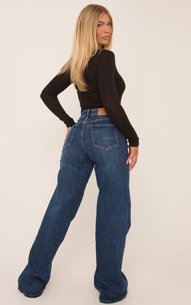 High Waist Wide Leg Stretchy Jeans In Dark Blue Denim