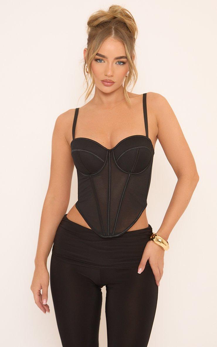 Sweetheart Neck Corset Top In Black Mesh