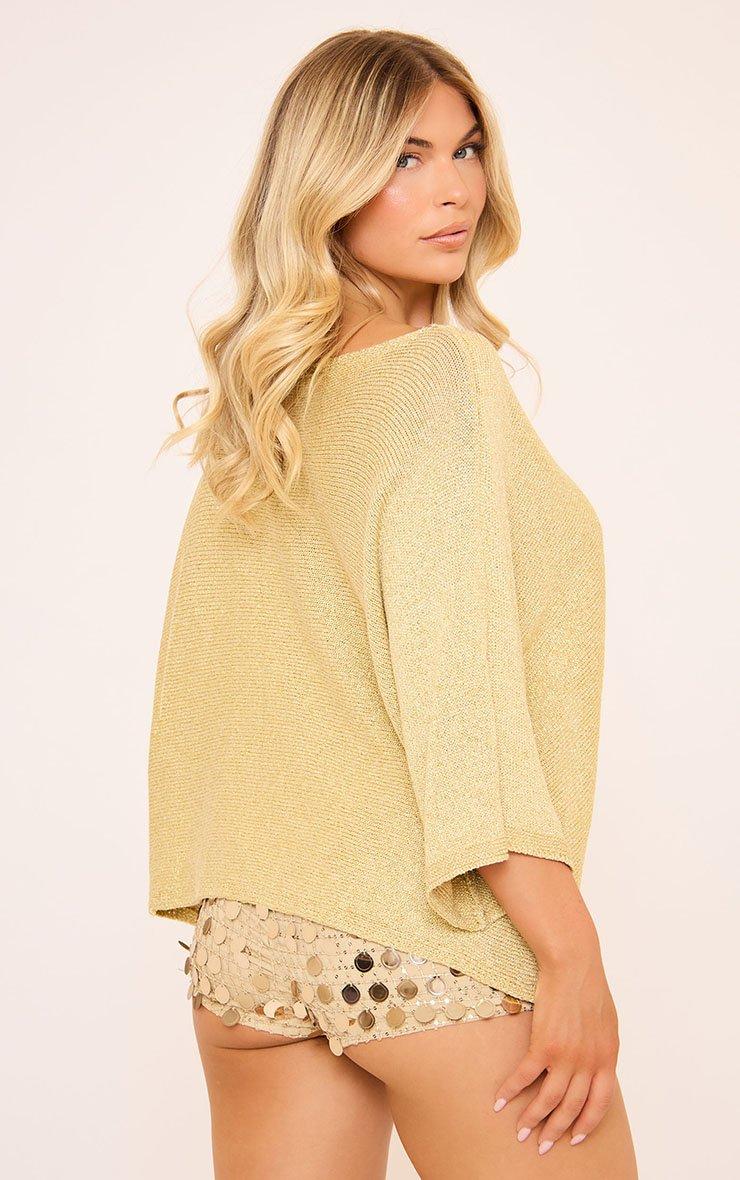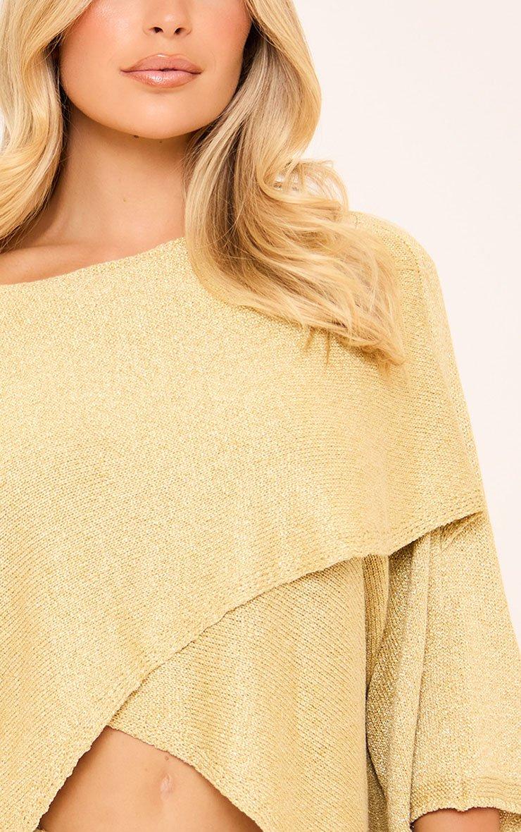 Long Sleeve Wrap Over Detail Cape Top In Gold Glitter Knit