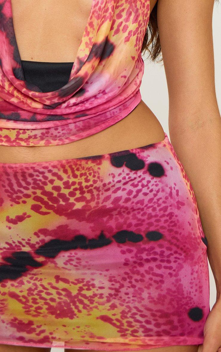 Mid Rise Mini Skirt In Pink Printed Mesh