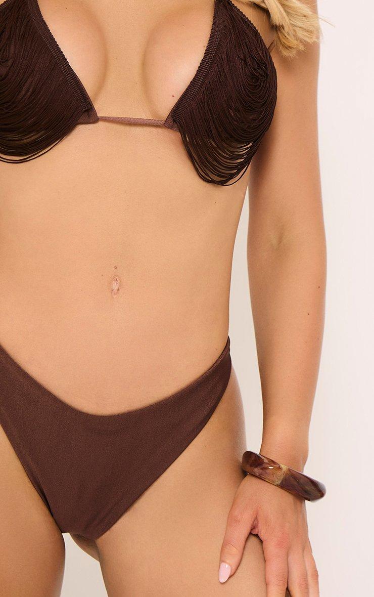 Tassel Detail Triangle Bikini Set In Brown