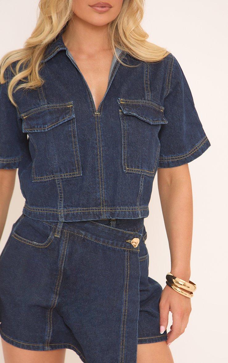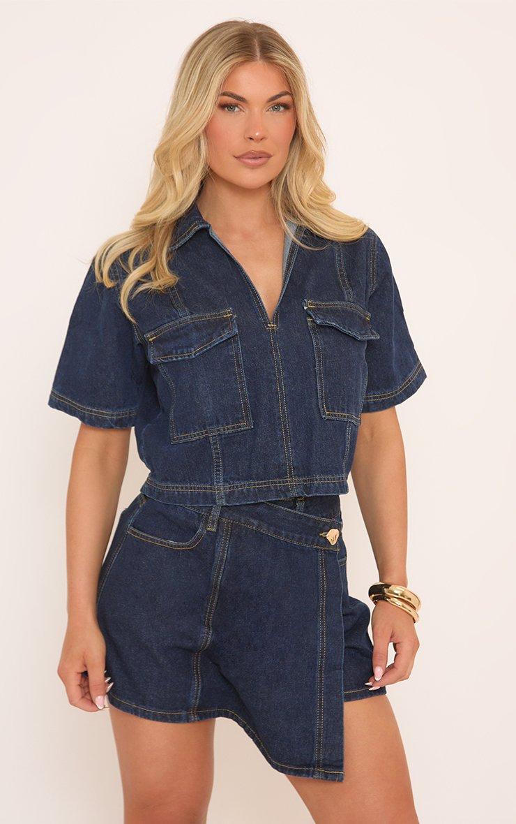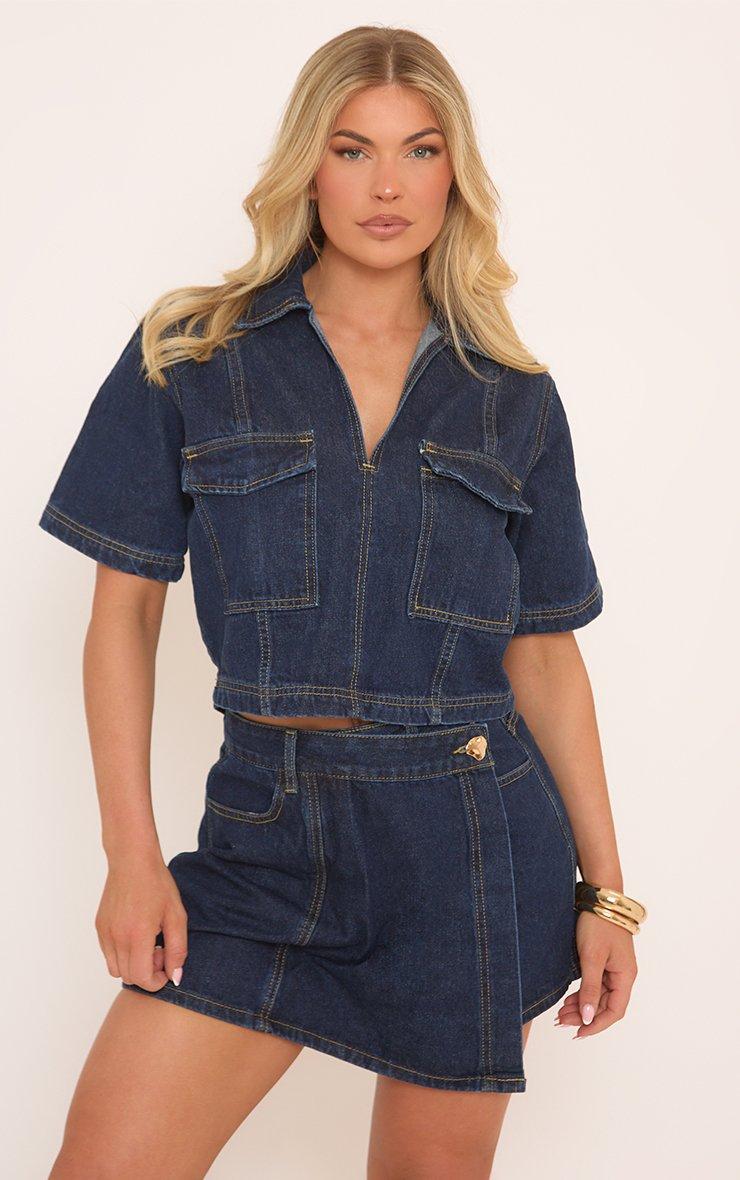 Ready to keep it cool and casual, doll? Featuring blue denim with short sleeves and pocket detailing, this boxy crop top adds a laid-back vibe to your look, perfect for effortless style all day long.