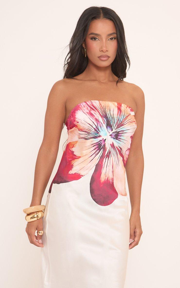 Bandeau Maxi Dress In Champagne Floral Print