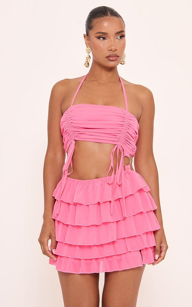 Turn up the heat in our Halterneck Ruched Bust Trim Detail Asymmetric Mini Dress in Pink. This hot pink ruched mini dress boasts a flattering halterneck, ruched bust detail and asymmetric hem. Style this mini dress with heels and chunky jewellery for a fierce yet flirty look!