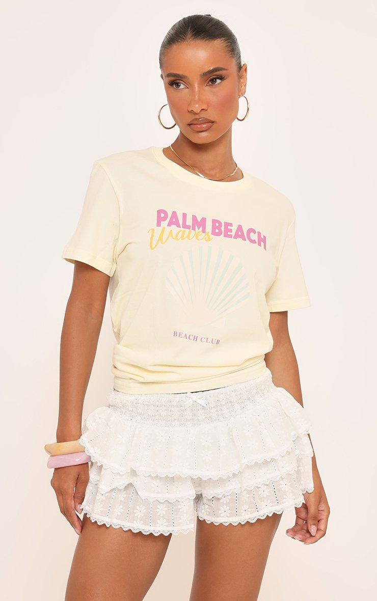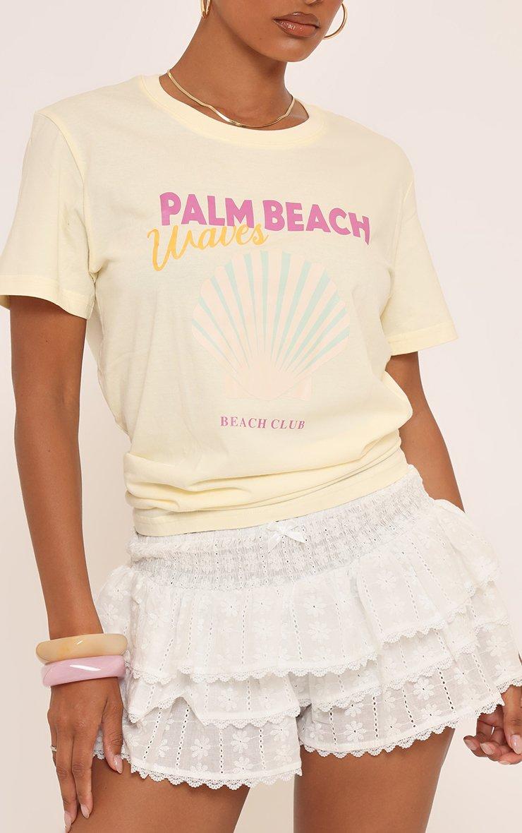 Weekend vibes, doll. Featuring soft cream fabric with oversized fit and bold print detailing, this tee brings relaxed chic and statement style for effortless cool all day long.