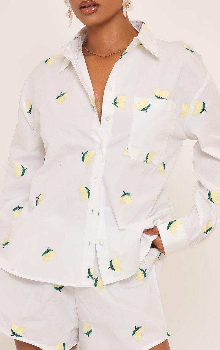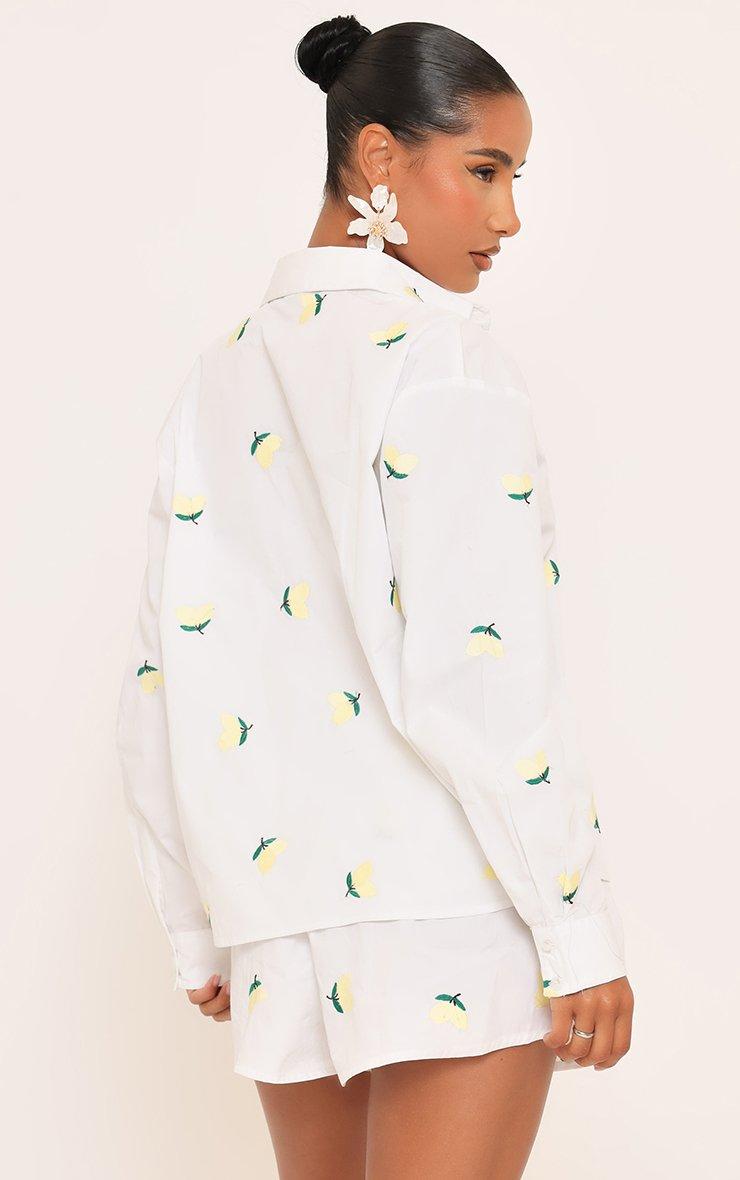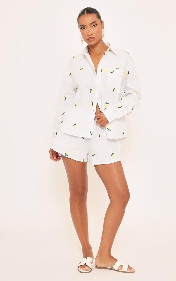 Mid Rise Lemon Embroidered Mini Shorts In White