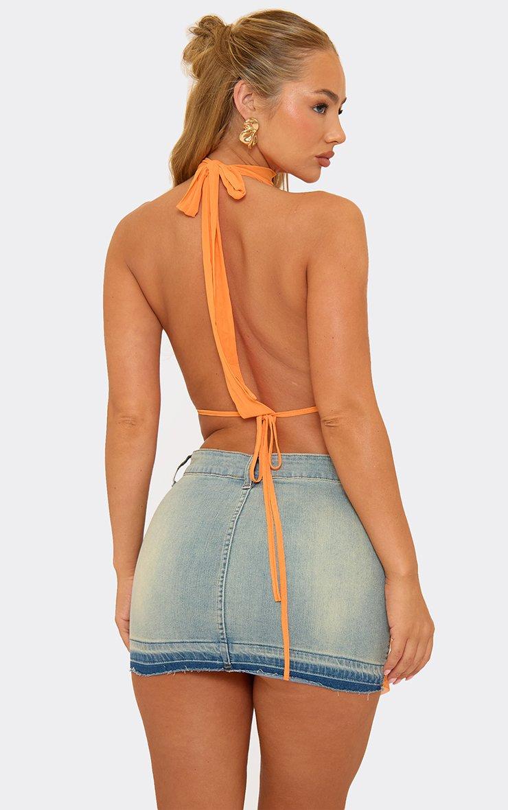 High Plunge Neck Ruffle Drape Detail Top In Orange
