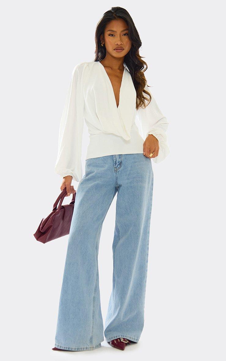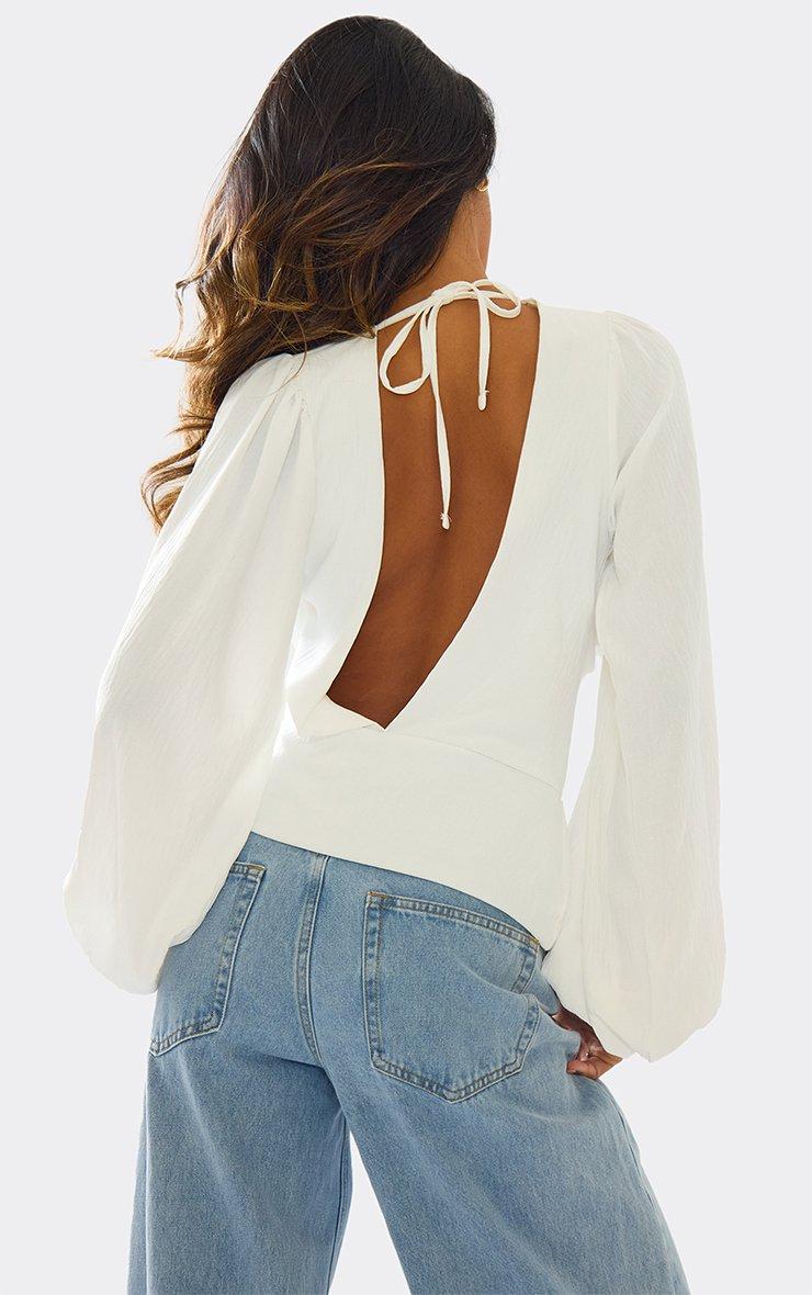 Long Sleeve Cowl Neck Open Tie Back Detail Top In White