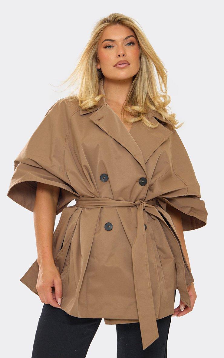 Short Sleeve Cape Detail Trench Jacket In Brown