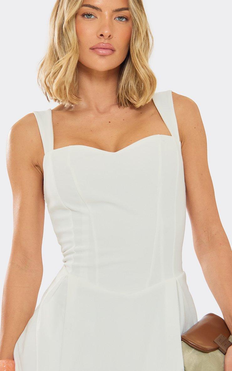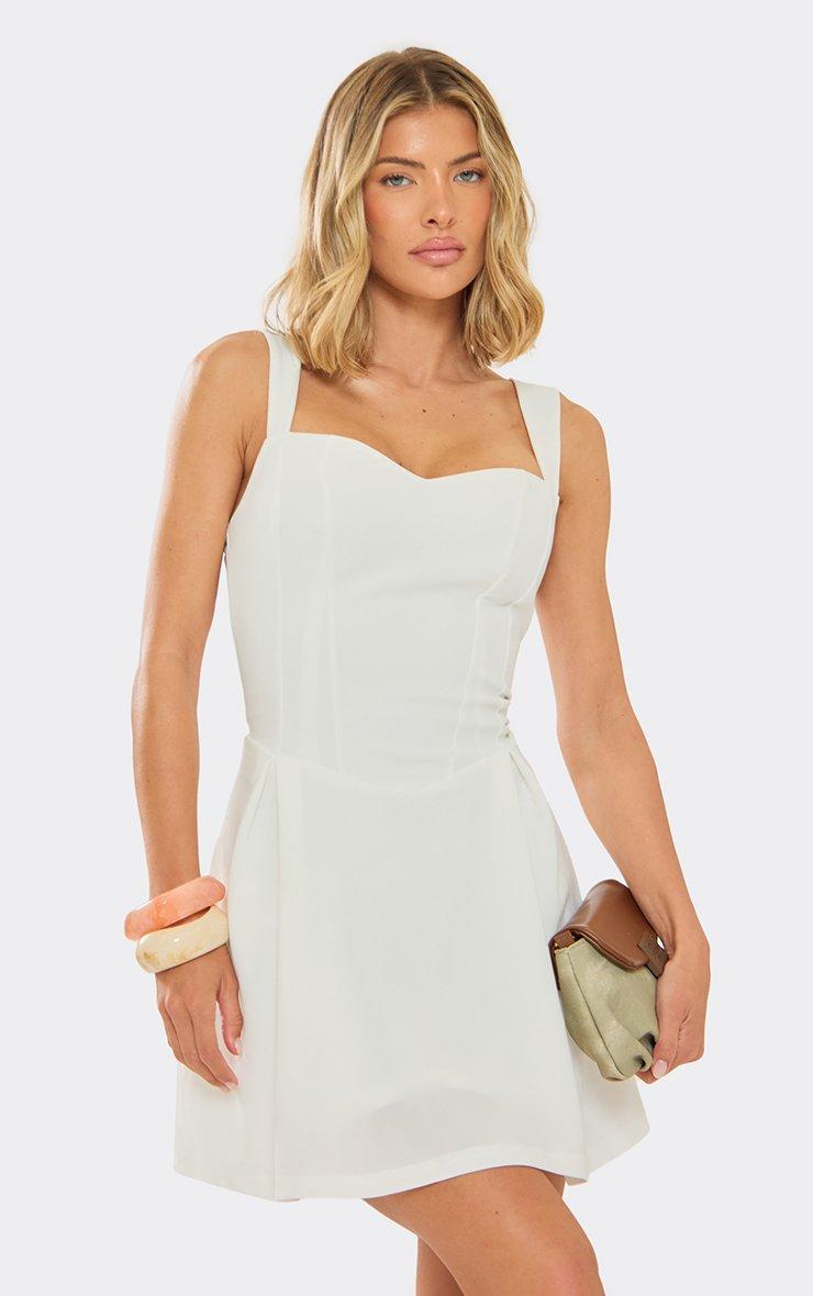 Sweetheart Neck Dropped Waist Pleated Detail Mini Dress In White