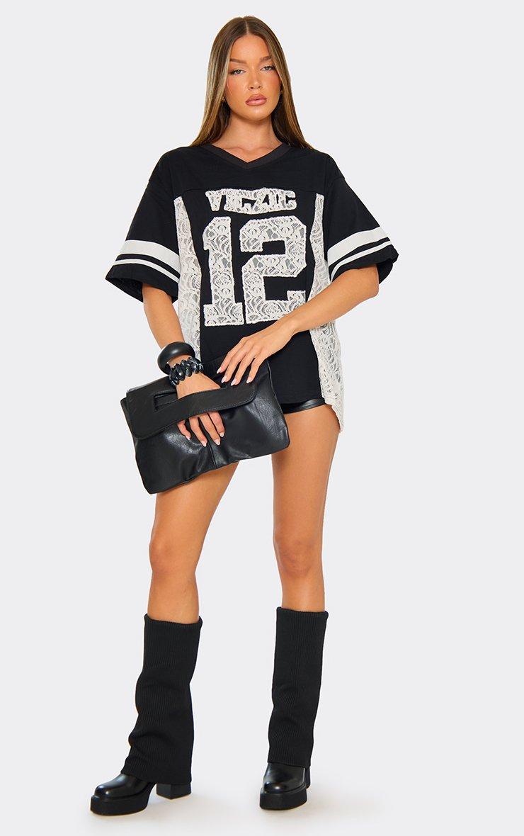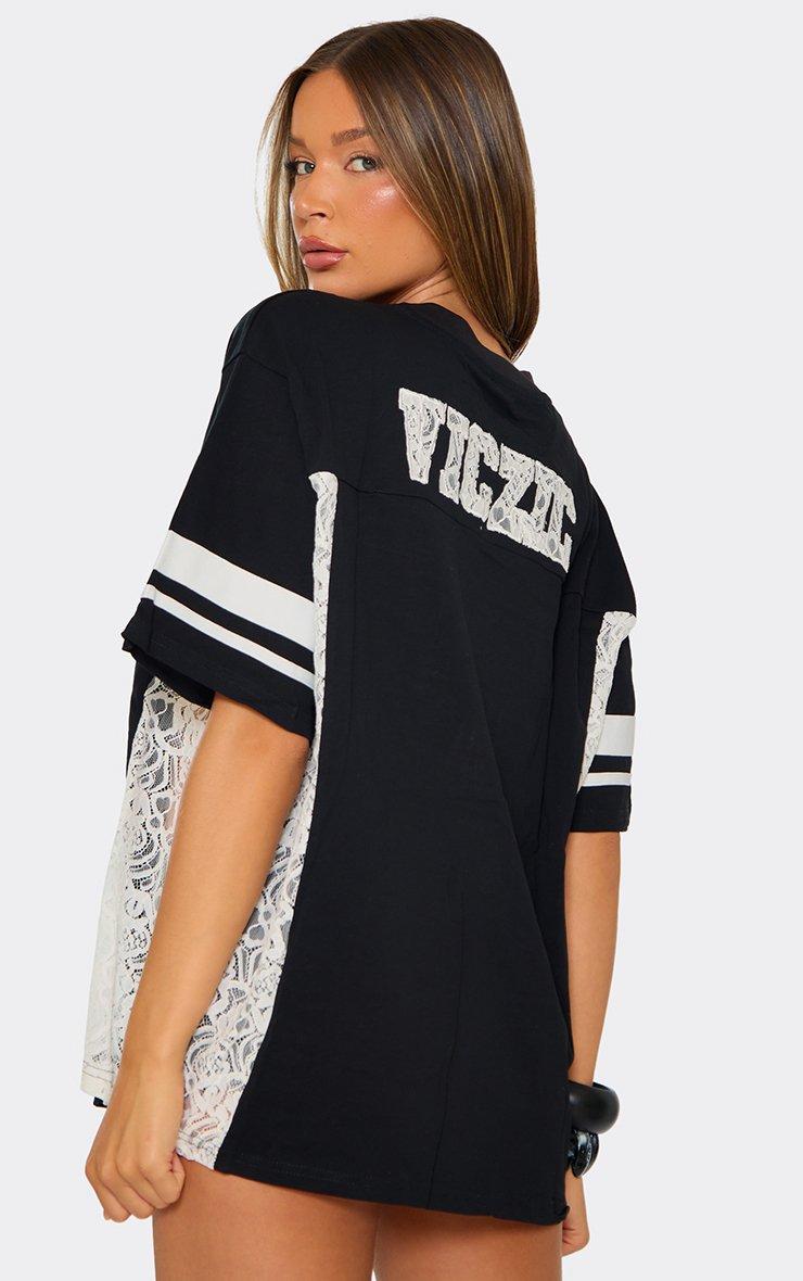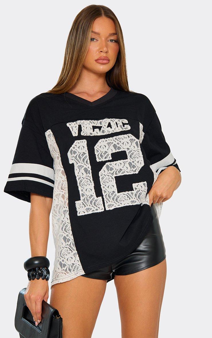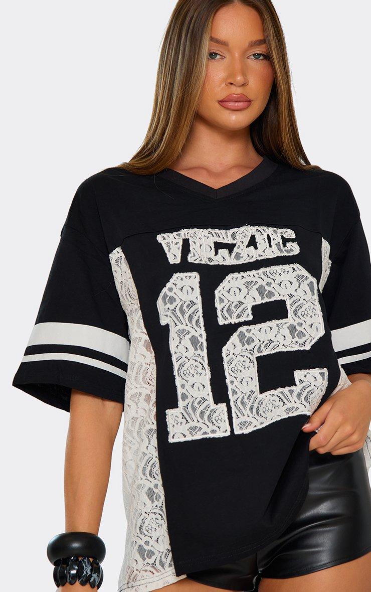 Oversized Short Sleeve Lace Side Stripe Detail Football Jersey In Black