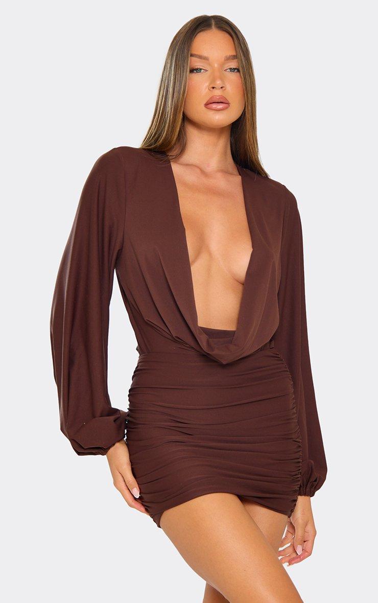 Dial up the drama on your going-out looks with this chocolate brown mini skirt. An easy statement-maker, this mini skirt features a rich brown tone that pairs well with anything, plus sultry ruched detailing. Cut from a slinky, stretchy fabric with a tight, mid/regular rise fit, this skirt hugs your curves and does the most for your legs. And if you style this chocolate brown mini skirt with its matching slinky chocolate brown long sleeve cowl neck top , black knee-high boots , and a shoulder bag , it's one of the best going-out uni outfits. It's one of those pieces that turns heads without doing too much. Key Features Chocolate Brown Colour Slinky, Stretchy Fabric Ruched Detailing Mini Length Mid/Regular Rise Tight Fit