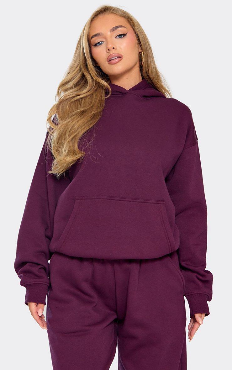 Jet-set in style with this dark plum hoodie. Cosy and effortlessly cool, it features long sleeves and a relaxed fit, making it perfect for effortless layering. Designed with an oversized silhouette, this hoodie skims comfortably over your frame while keeping you warm on the go. Style this dark plum hoodie with its matching plum mid-rise straight leg joggers and a crossbody bag for comfy airport outfits that are both practical and stylish. Loungewear never looked so good. Key Features Dark Plum Colour Long Sleeve Design Oversized Fit Relaxed Silhouette Soft, Comfortable Fabric