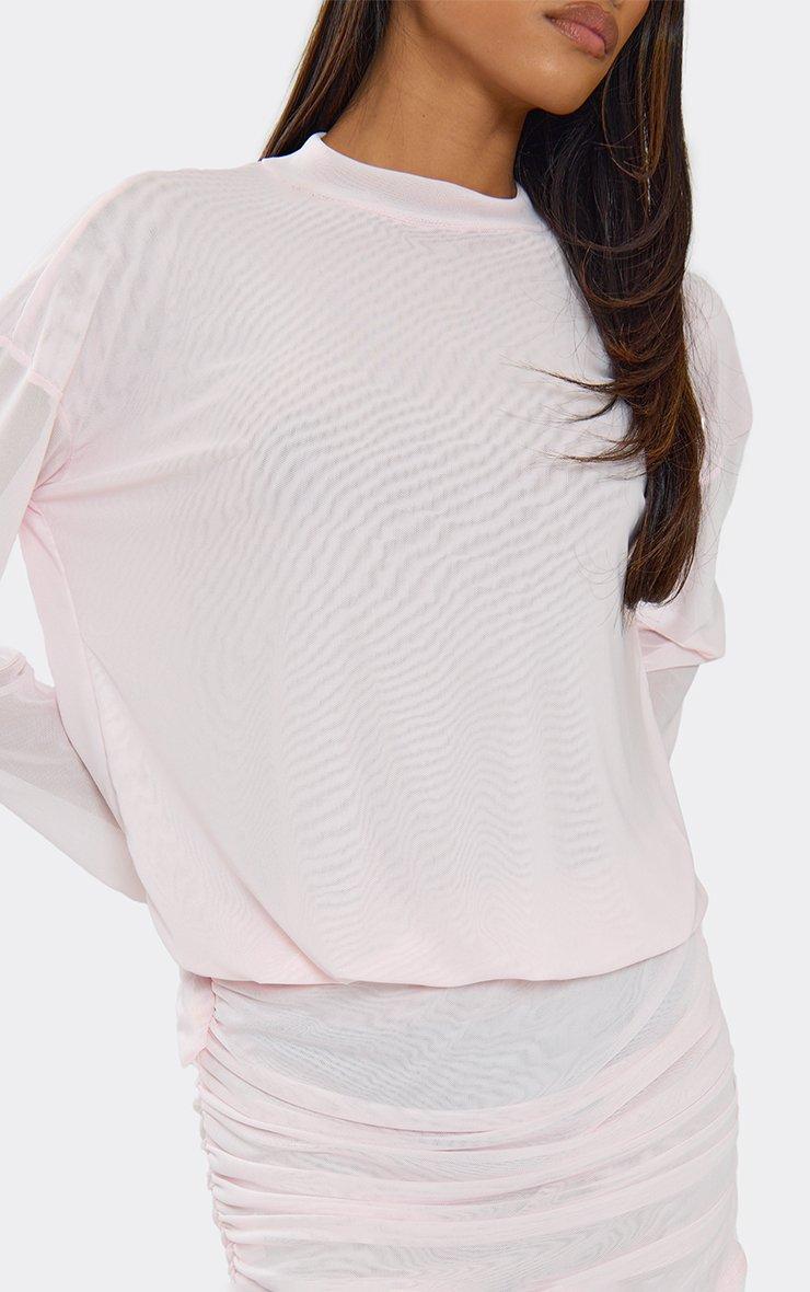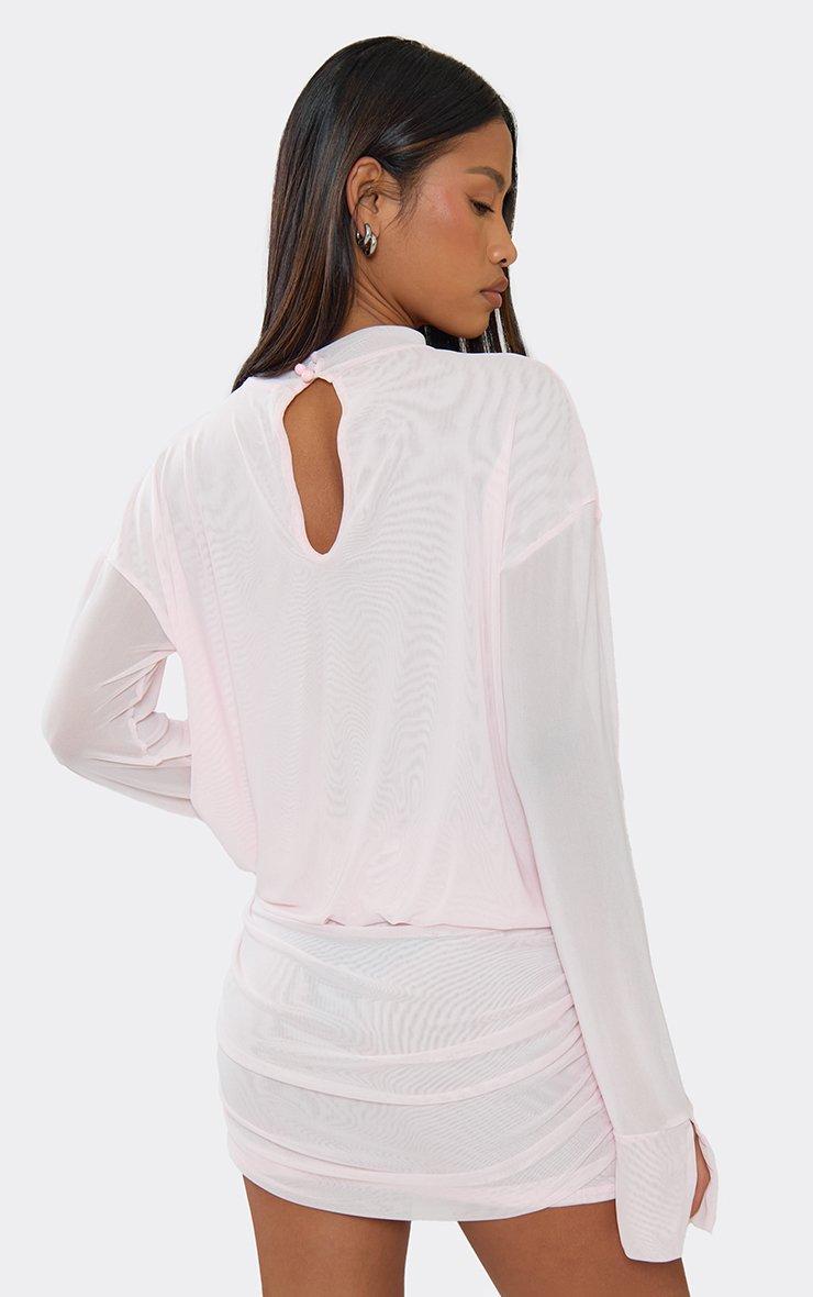 Transform your evening look in pink material featuring long sleeves, ruched detailing, and a blouson mini fit. This sharp, high-octane dress delivers a total "it-girl" silhouette for a major boss-babe finish. Style with clear strap heels and silver jewelry for a polished vibe.