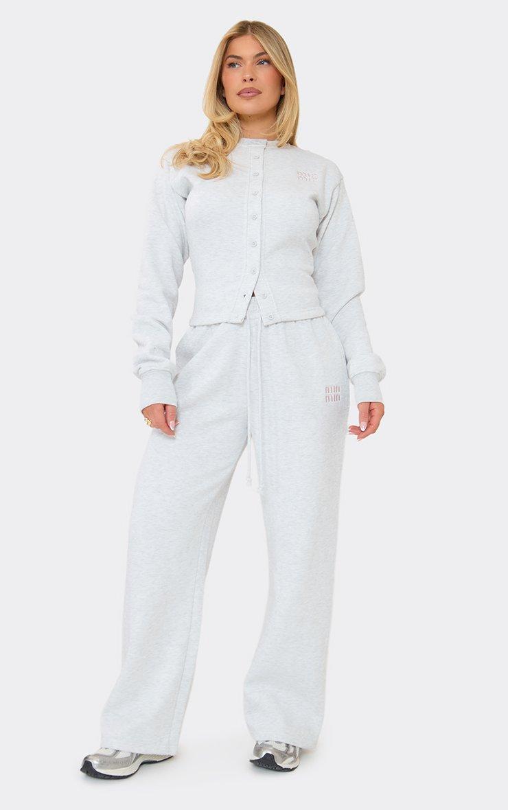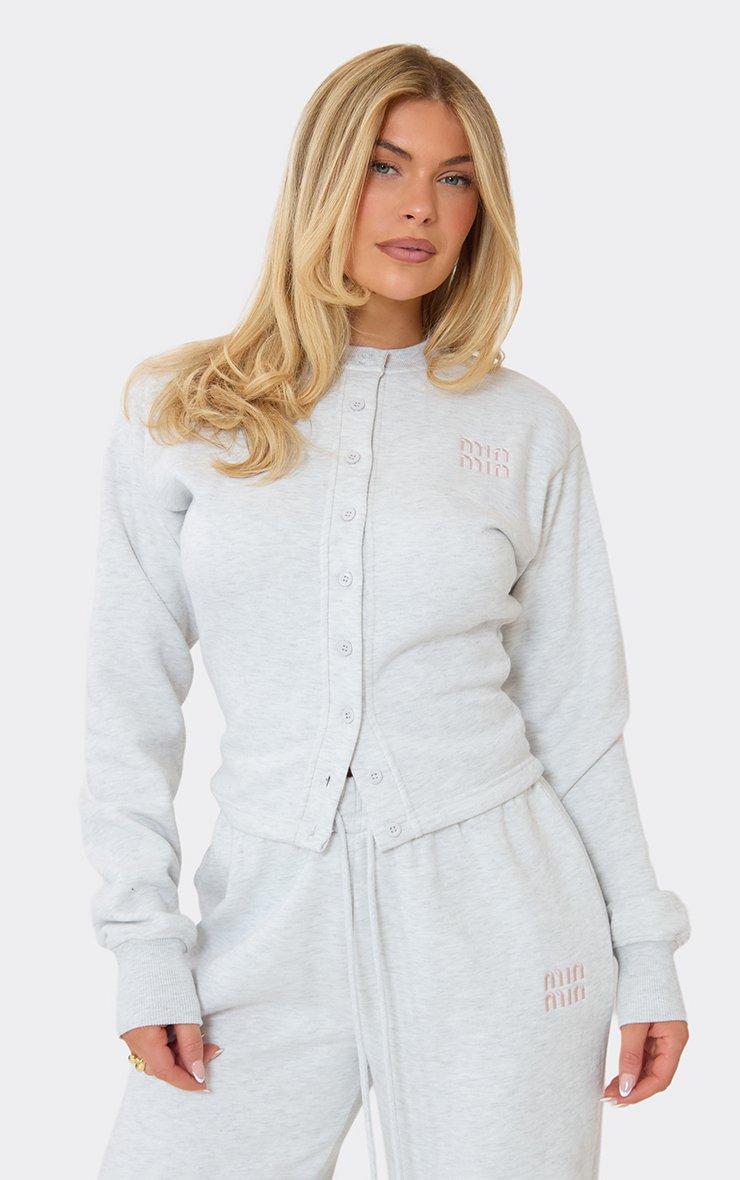 Keep your cool-girl aesthetic on point with this chilled essential, perfect for those casual Sunday vibes. Featuring light grey marl sweat material with embroidered detailing, a button-up neckline and a relaxed fit.