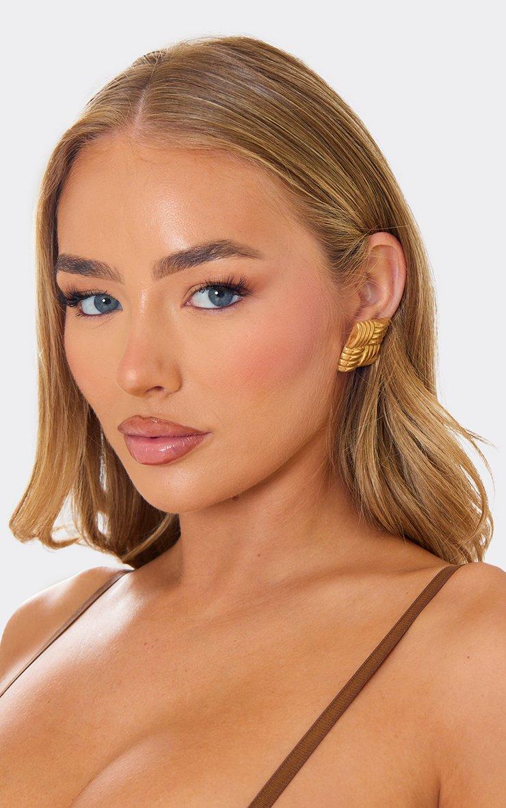 Textured Detail Squared Shaped Stud Earrings In Gold