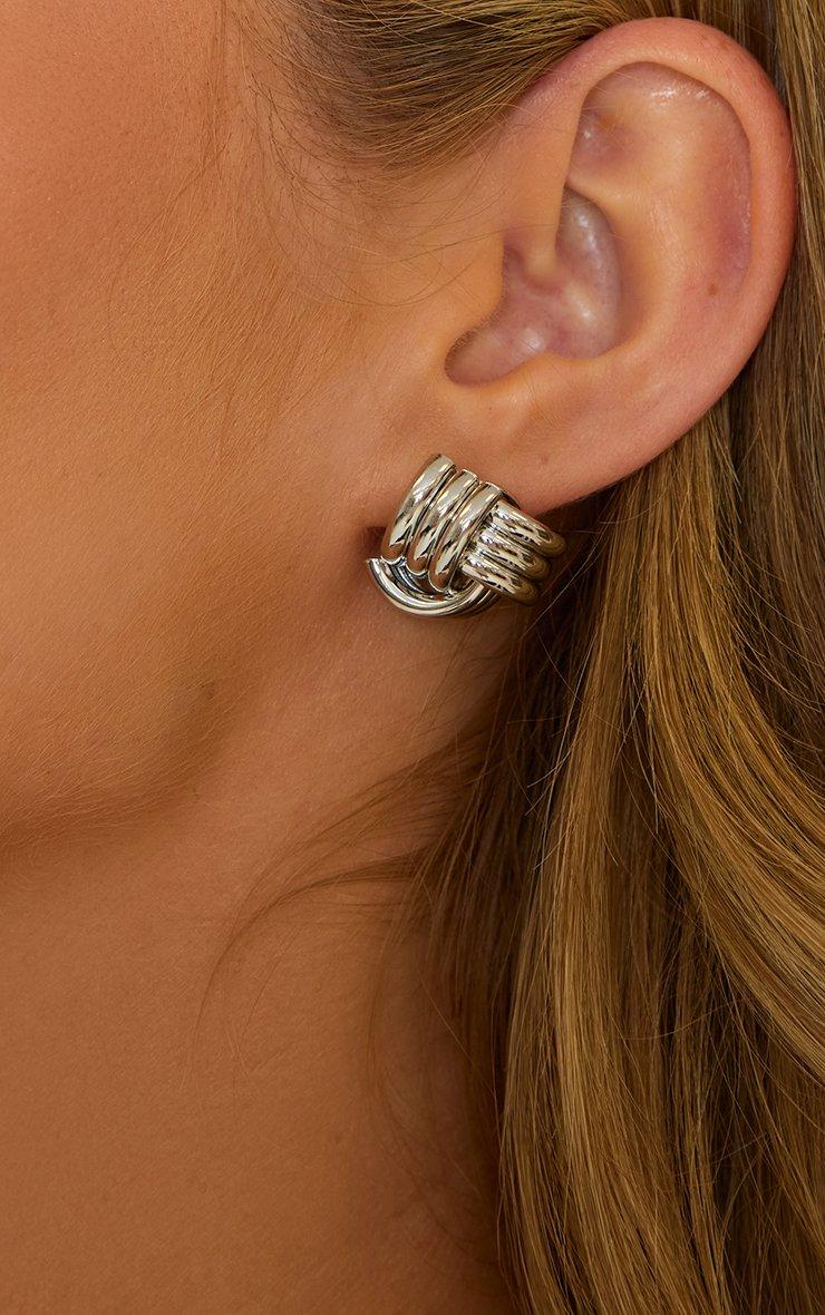 Textured Knot Detail Stud Earrings In Silver