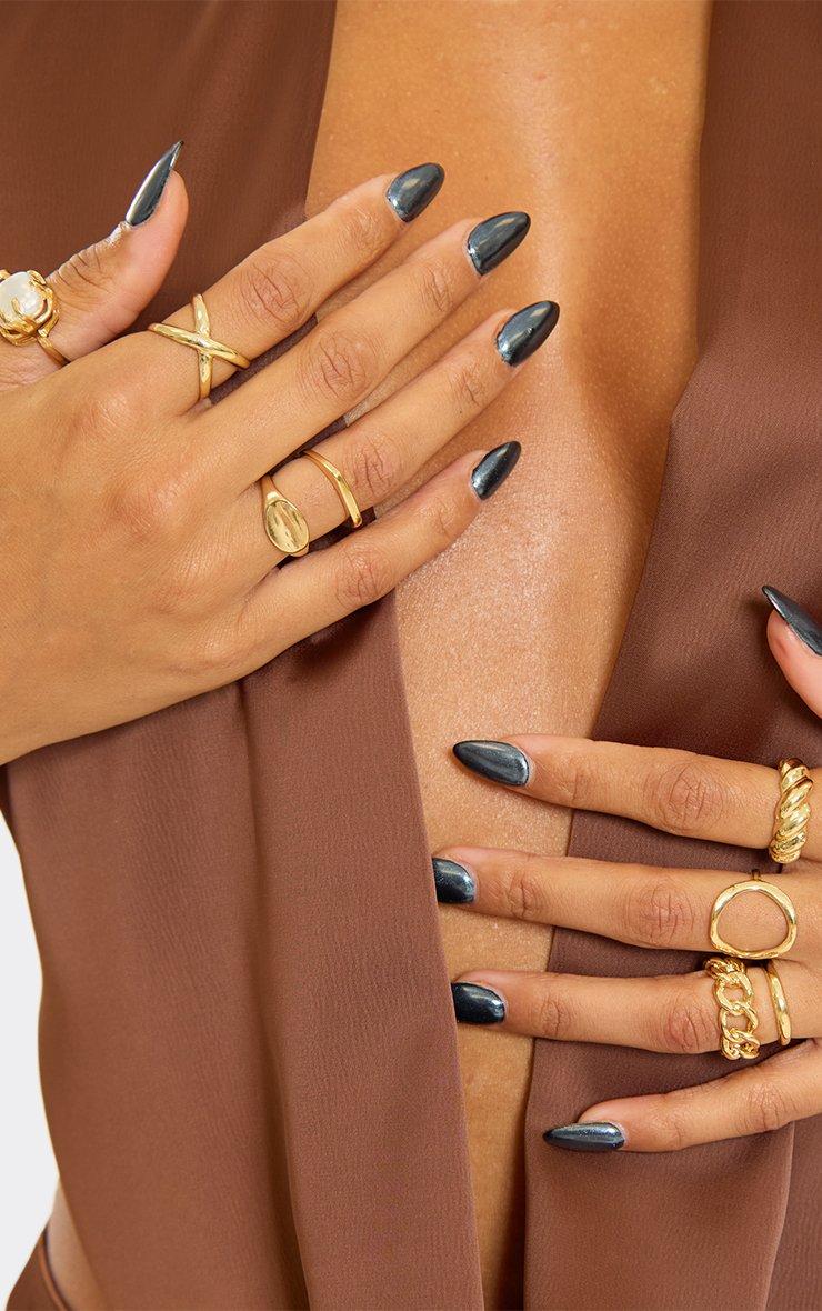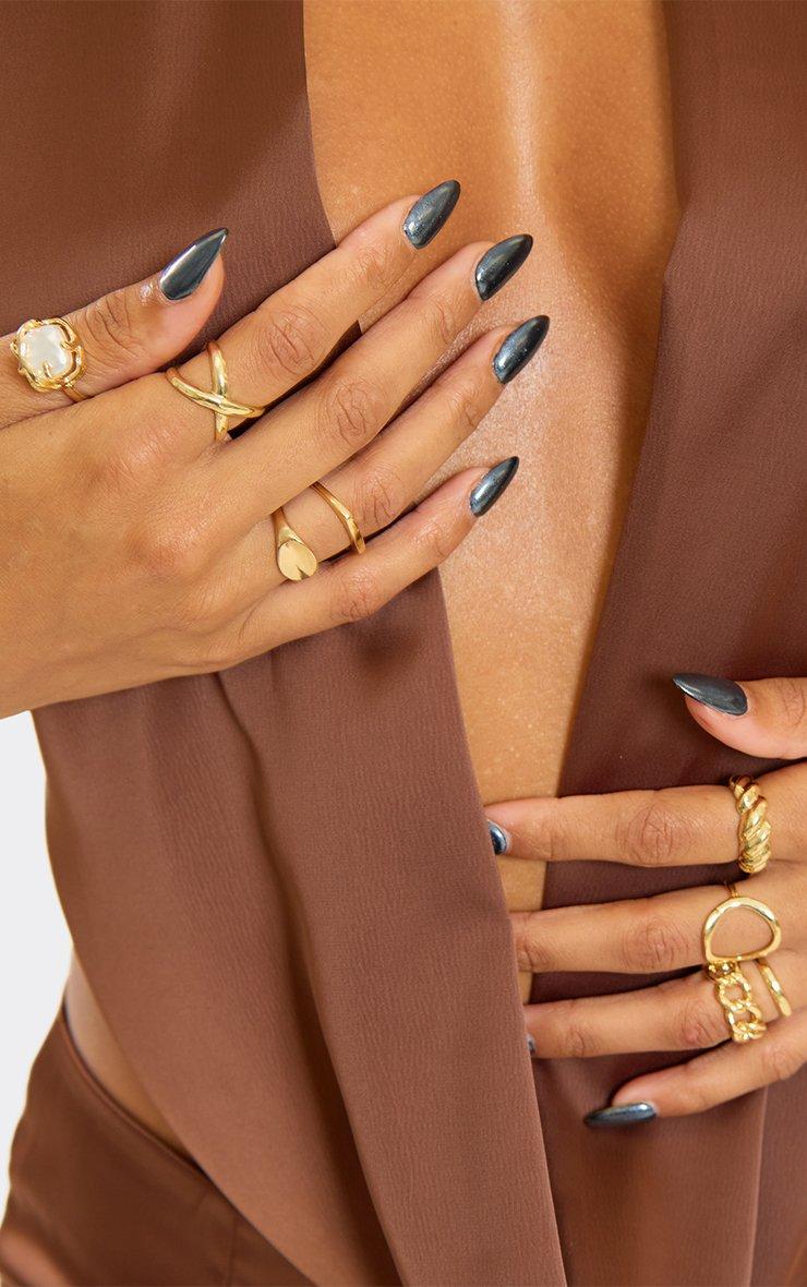 Cut Out Pearl Detail Multi Ring Pack In Gold