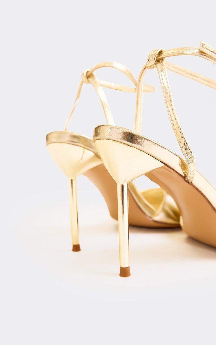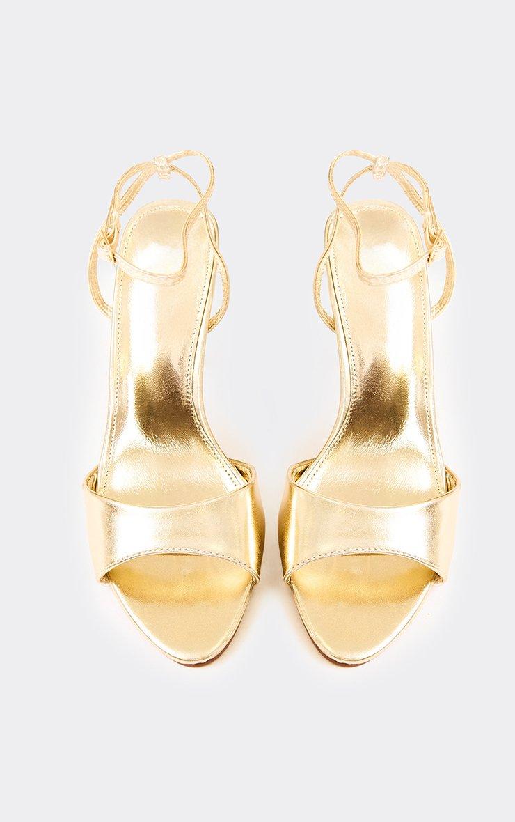 Connection Peep Toe Ankle Strap Stiletto Heel In Gold Faux Leather