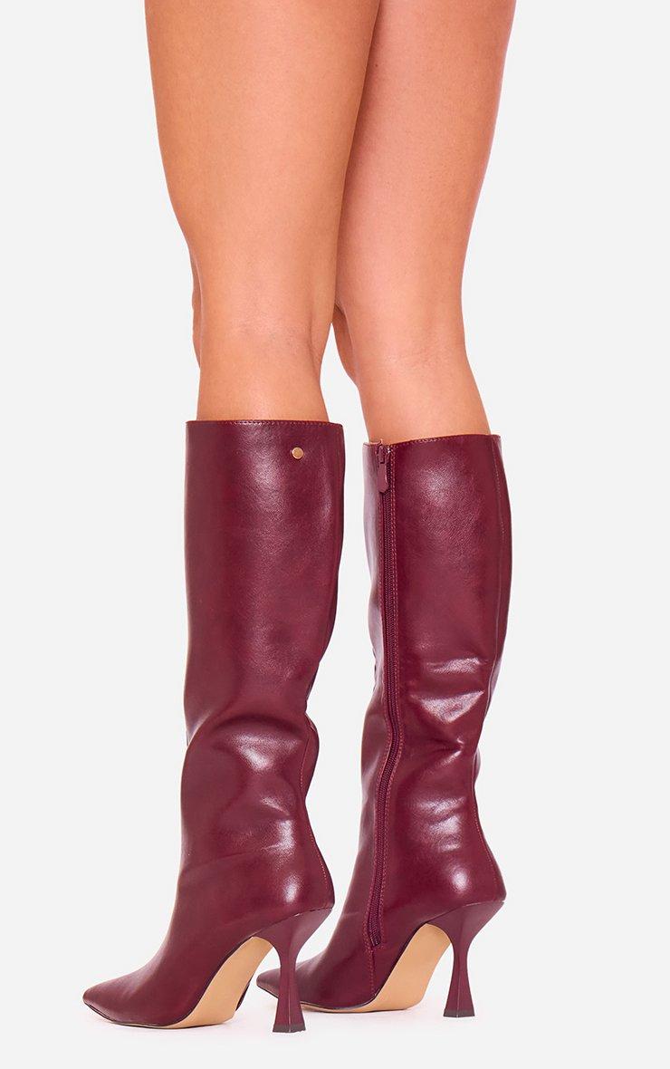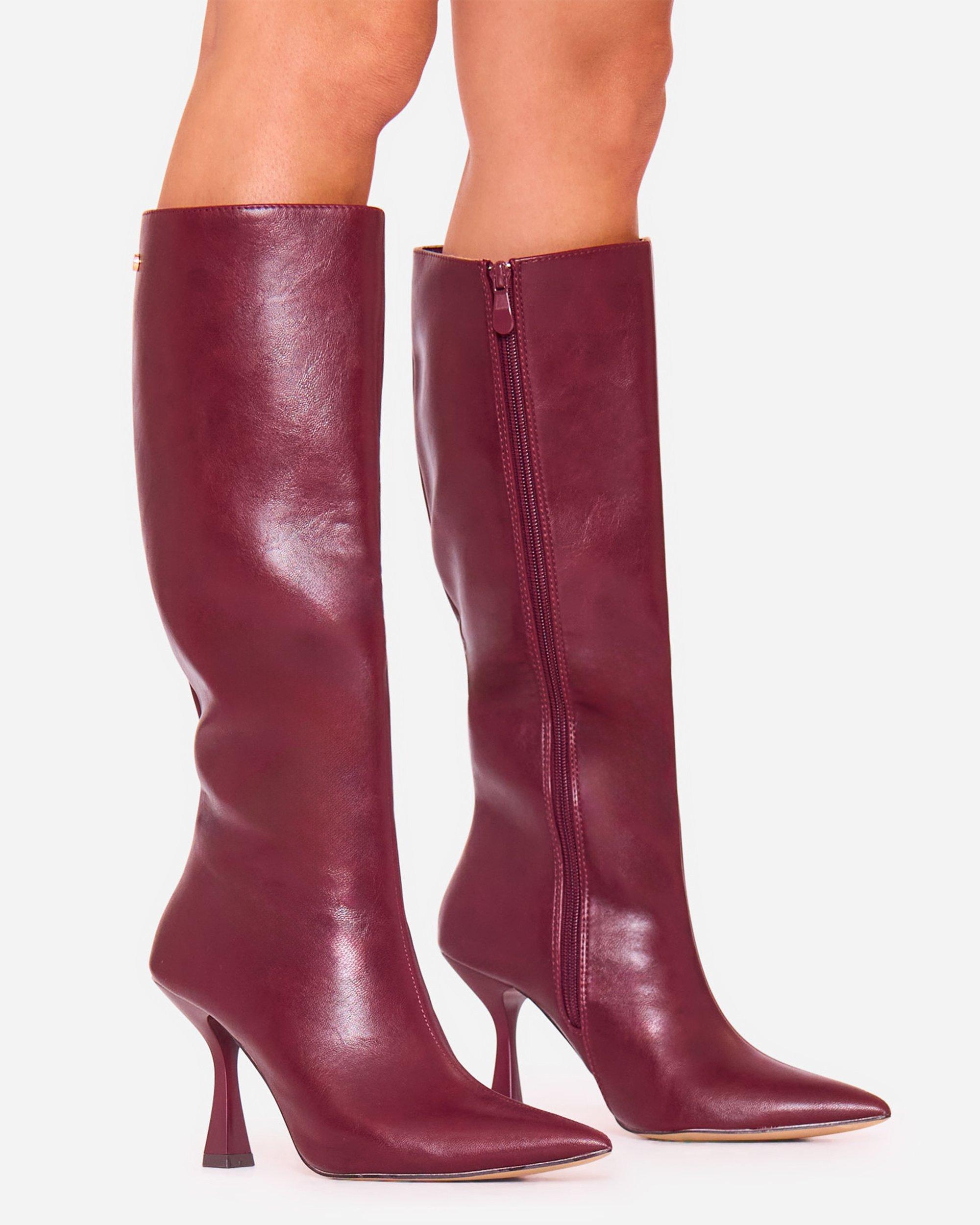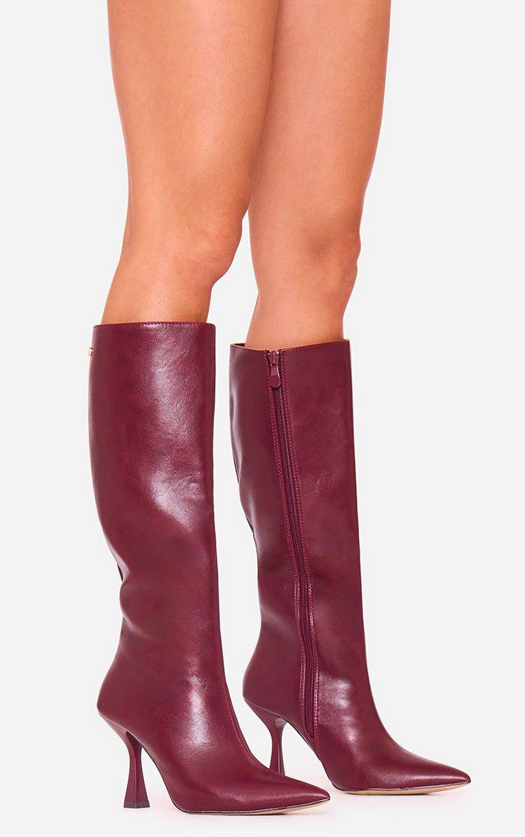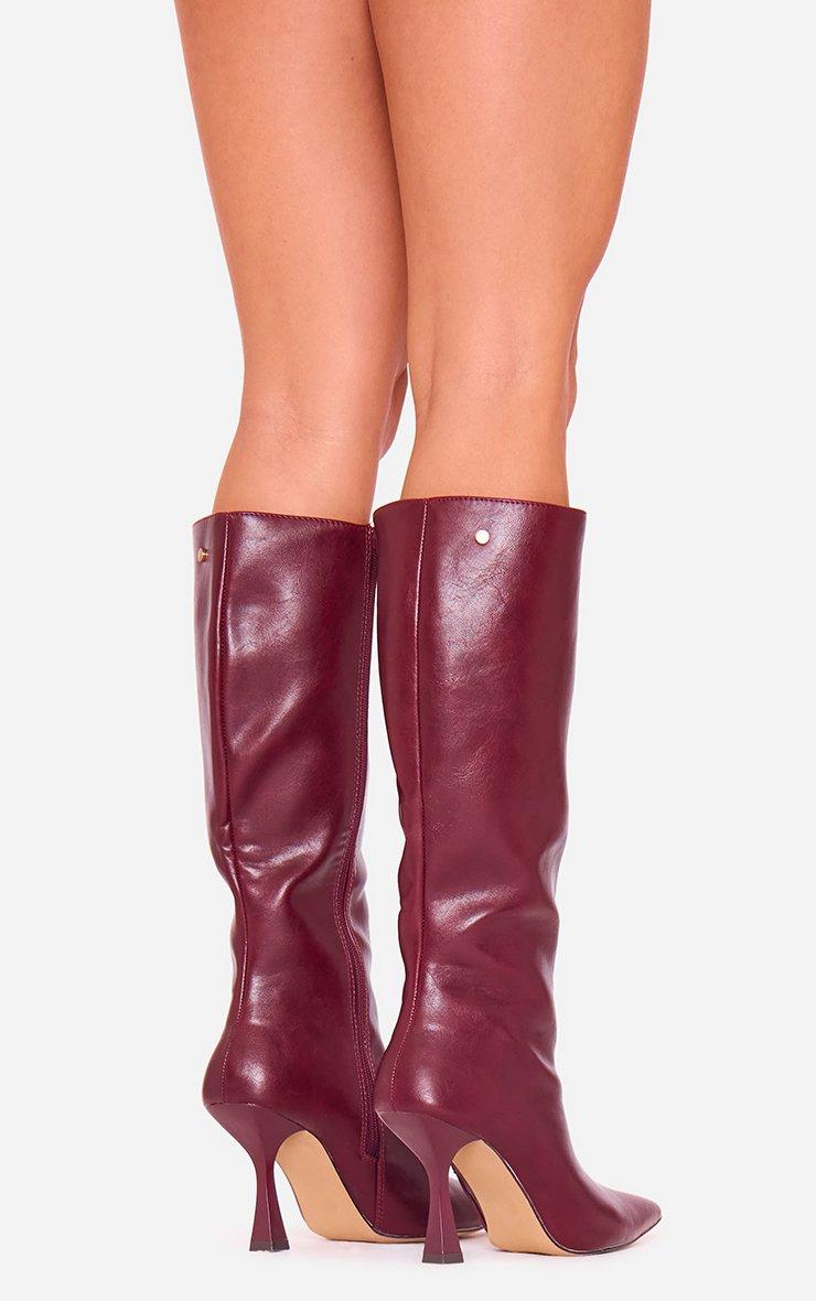 Sullivan Pointed Toe Knee High Long Boot In Burgundy Faux Leather