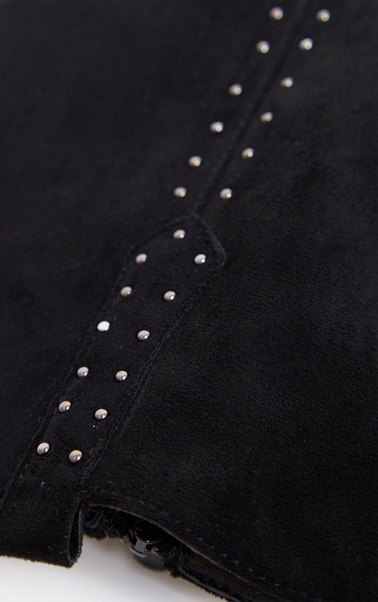 Bring bold-chic vibes, doll! Crafted in black faux suede, these knee-high boots feature stud detailing and a pointed toe, giving your look a stylish, statement-ready finish.