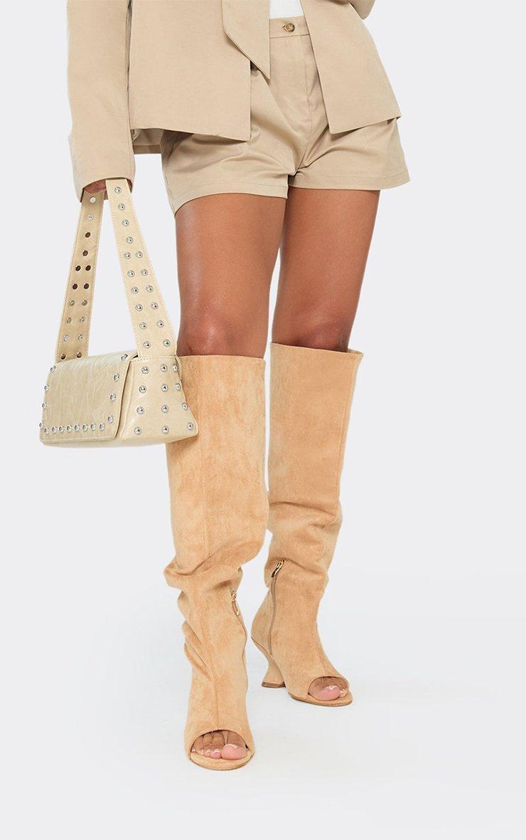 Rev Peep Toe Knee High Wedge Boot In Sand Faux Suede