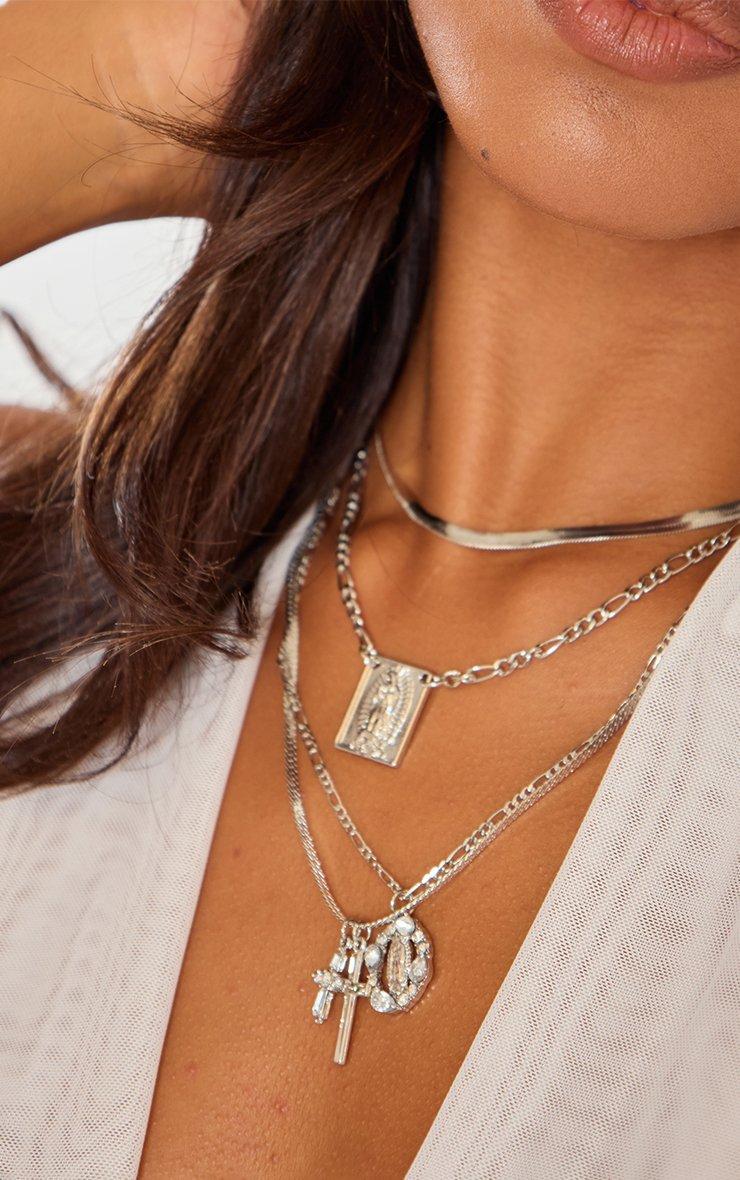 Multi Crucifix Pendant Detail Multi Chain Necklace In Silver