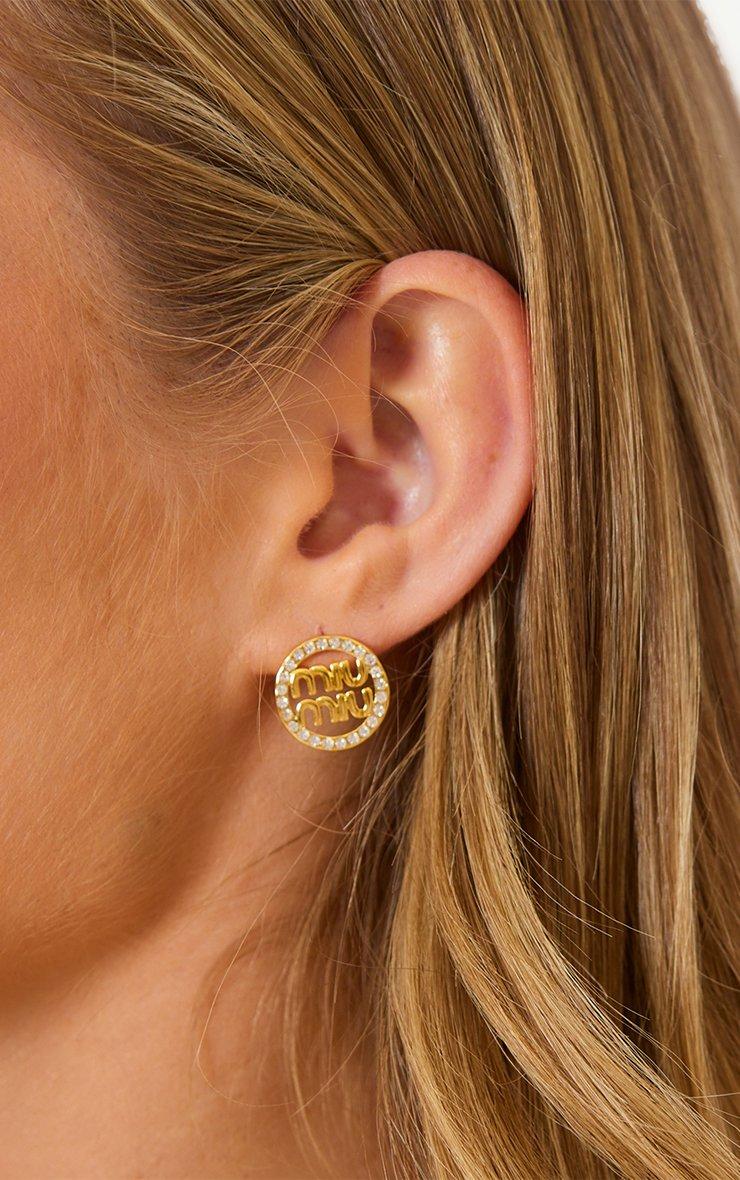 Logo Diamante Detail Circle Shaped Stud Earrings In Gold