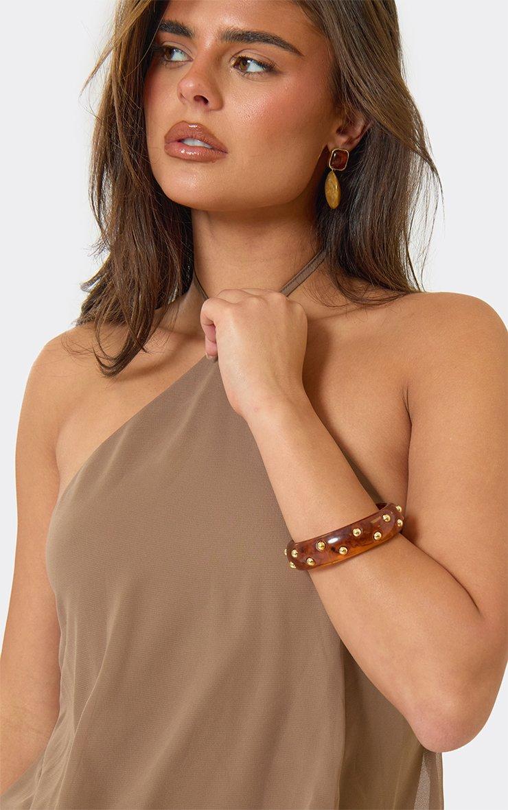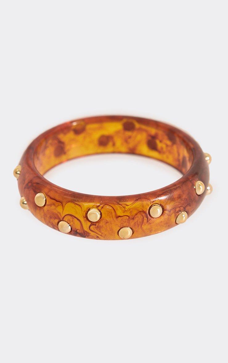 Perfect for adding edge to any look, doll. Featuring brown resin material with studded detailing, this bangle brings bold, it-girl energy to your outfit. Style stacked with other bangles or with a statement watch for a boss-babe finish.