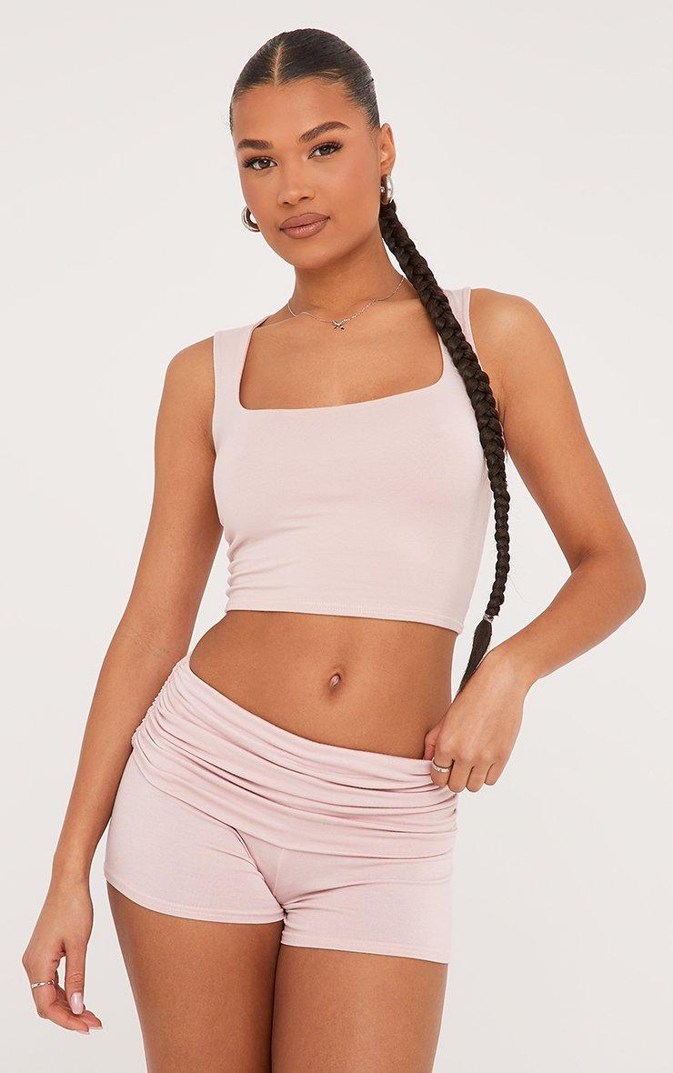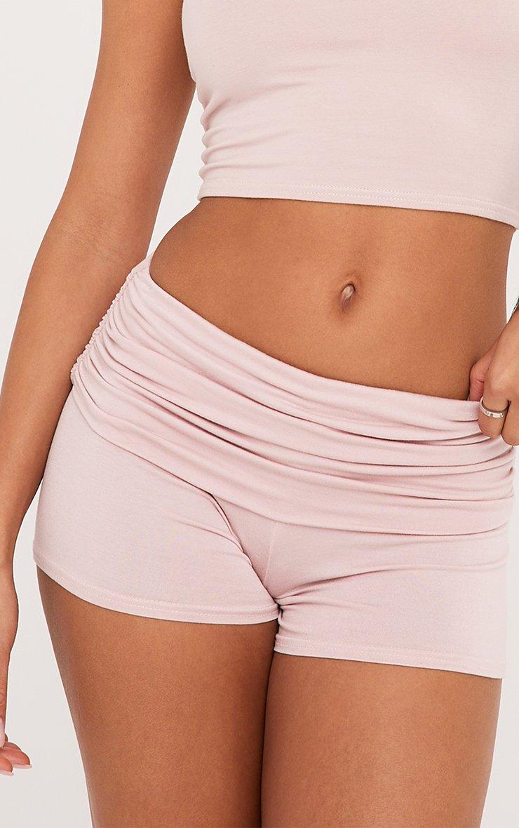 These shorts are a yes from us doll. Featuring a dusky pink material and a fold over low rise waistband.