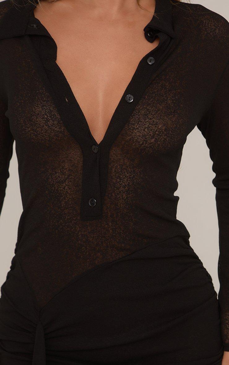 Long Sleeve Button Front Draped Mini Shirt Dress In Black Texture