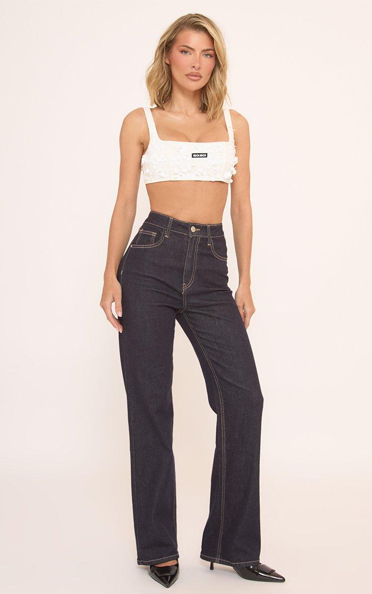 Square Neck Moi Moi Crop Top In White Applique