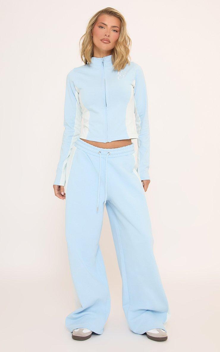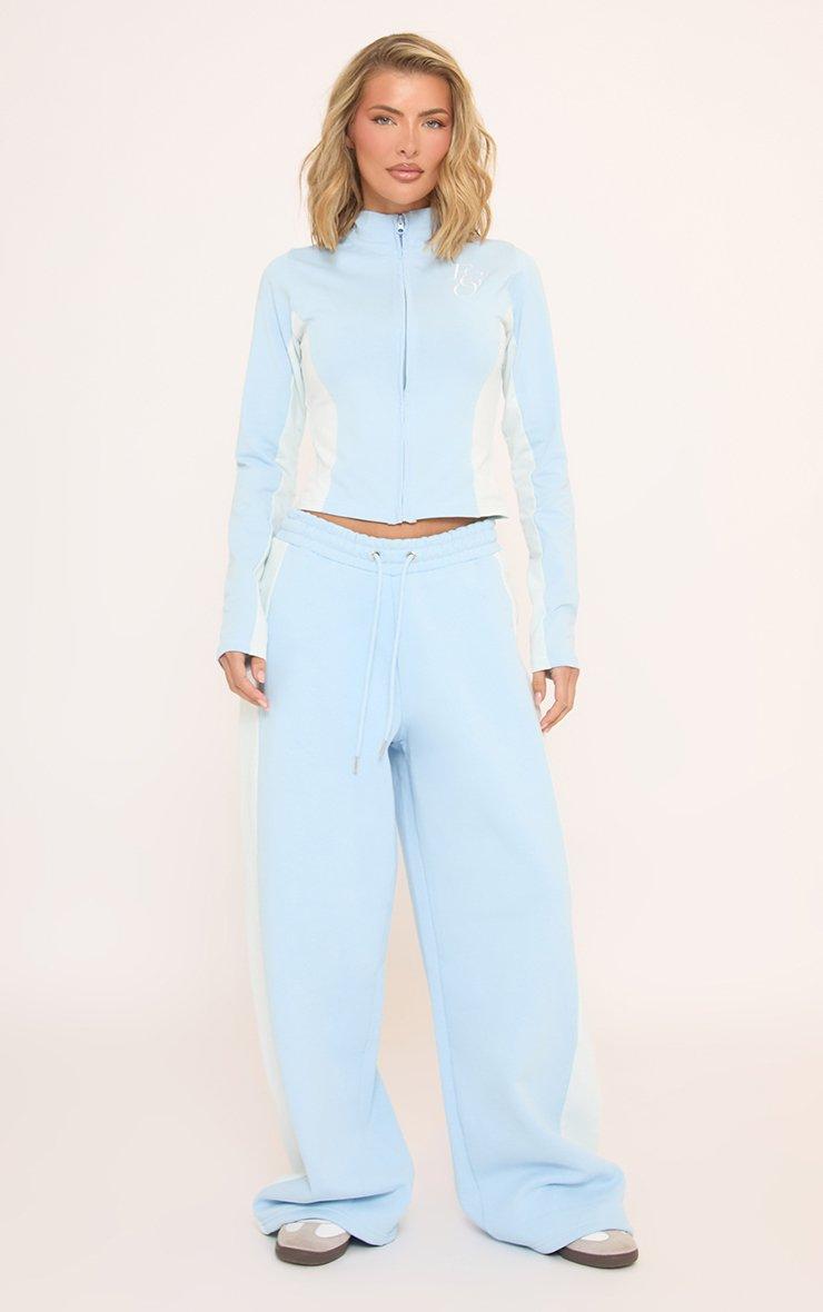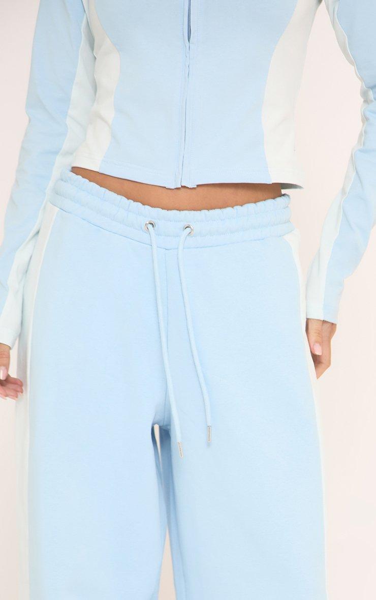 Tie Waist Contrast Side Stripe Wide Leg Joggers In Baby Blue