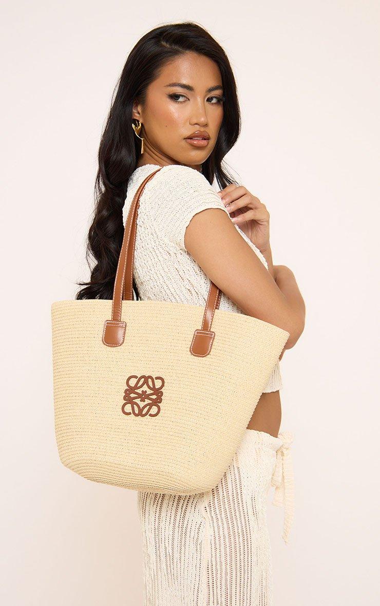 Serve serious beach glam, doll! Featuring cream woven material with a shaped design and martini logo detailing, this beach bag brings bold, chic vibes to your seaside style.