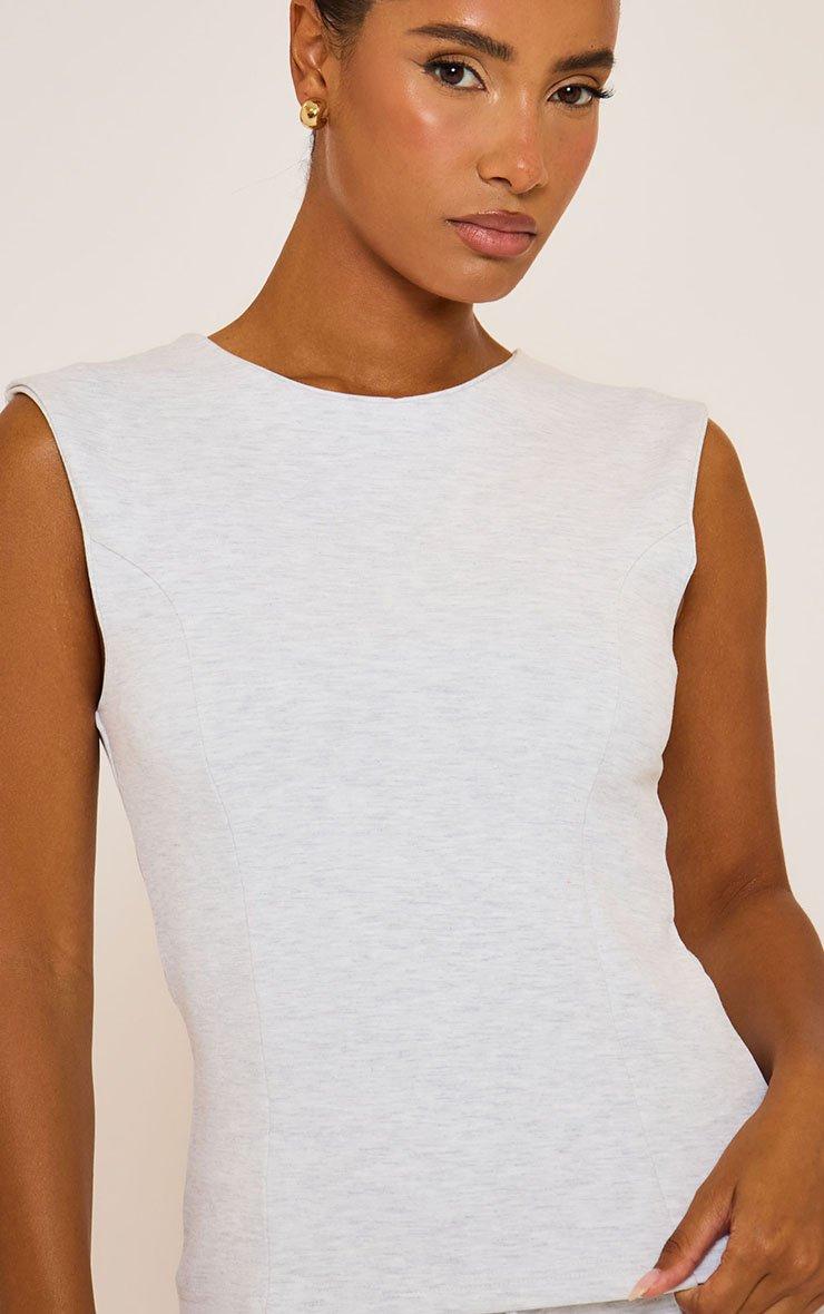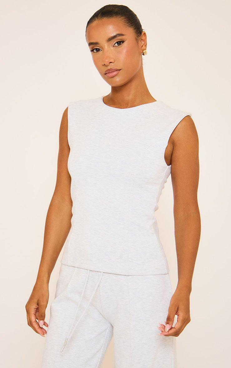 Sleeveless Seam Detail Fitted Interlock Top In Grey