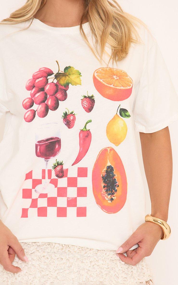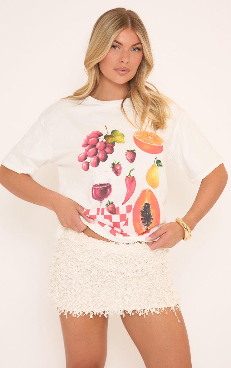 Short Sleeve Fruit Print Detail T-Shirt In White