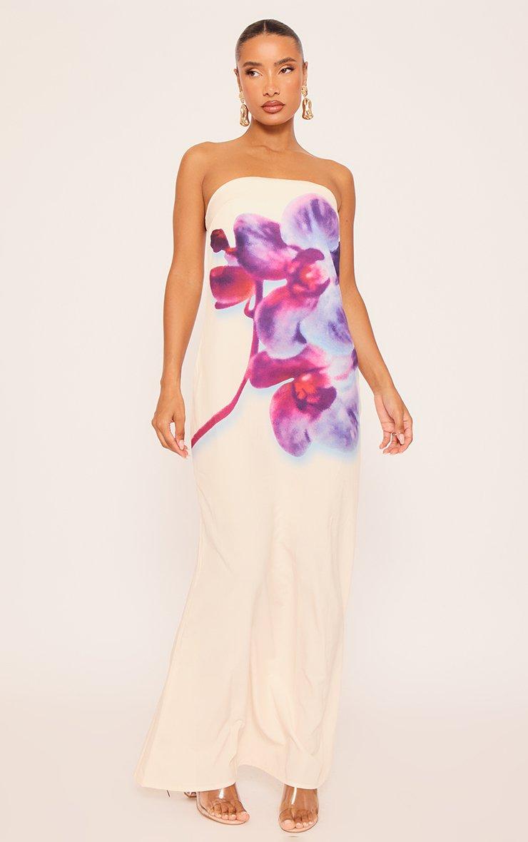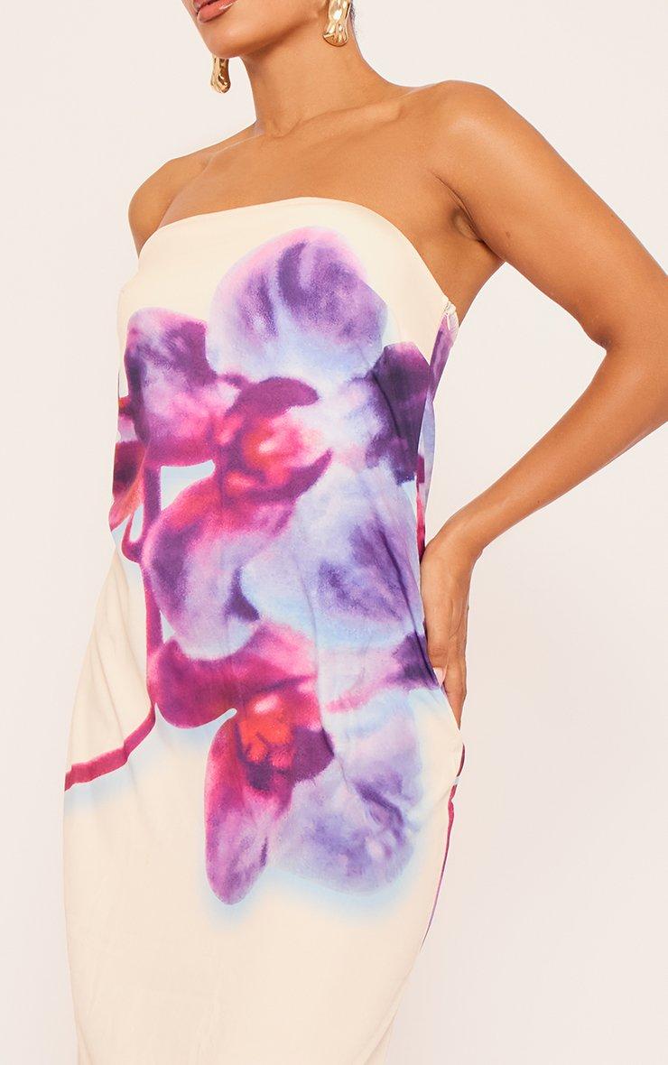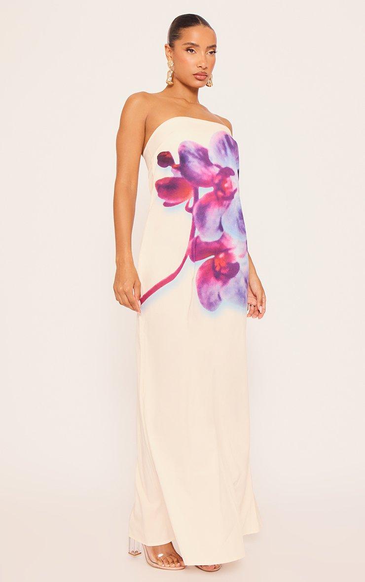 Serve fresh vibes, doll! Featuring crisp white fabric with floral print and bandeau silhouette, this maxi dress brings bold, chic energy perfect for standout sunny days with attitude.