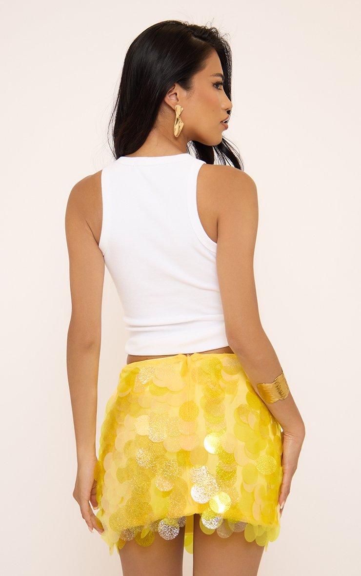 For making a statement on sunny days, doll. Featuring cream rib material with yellow diamante ‘Moi Moi’ slogan detailing, this sleeveless top shines with bold vibes and standout style.