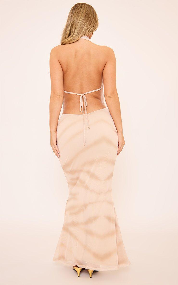 Extreme Cowl Neck Front Fishtail Detail Tie Back Maxi Dress In Nude Printed