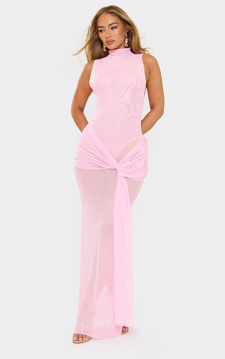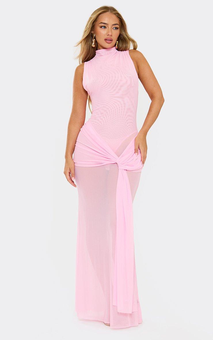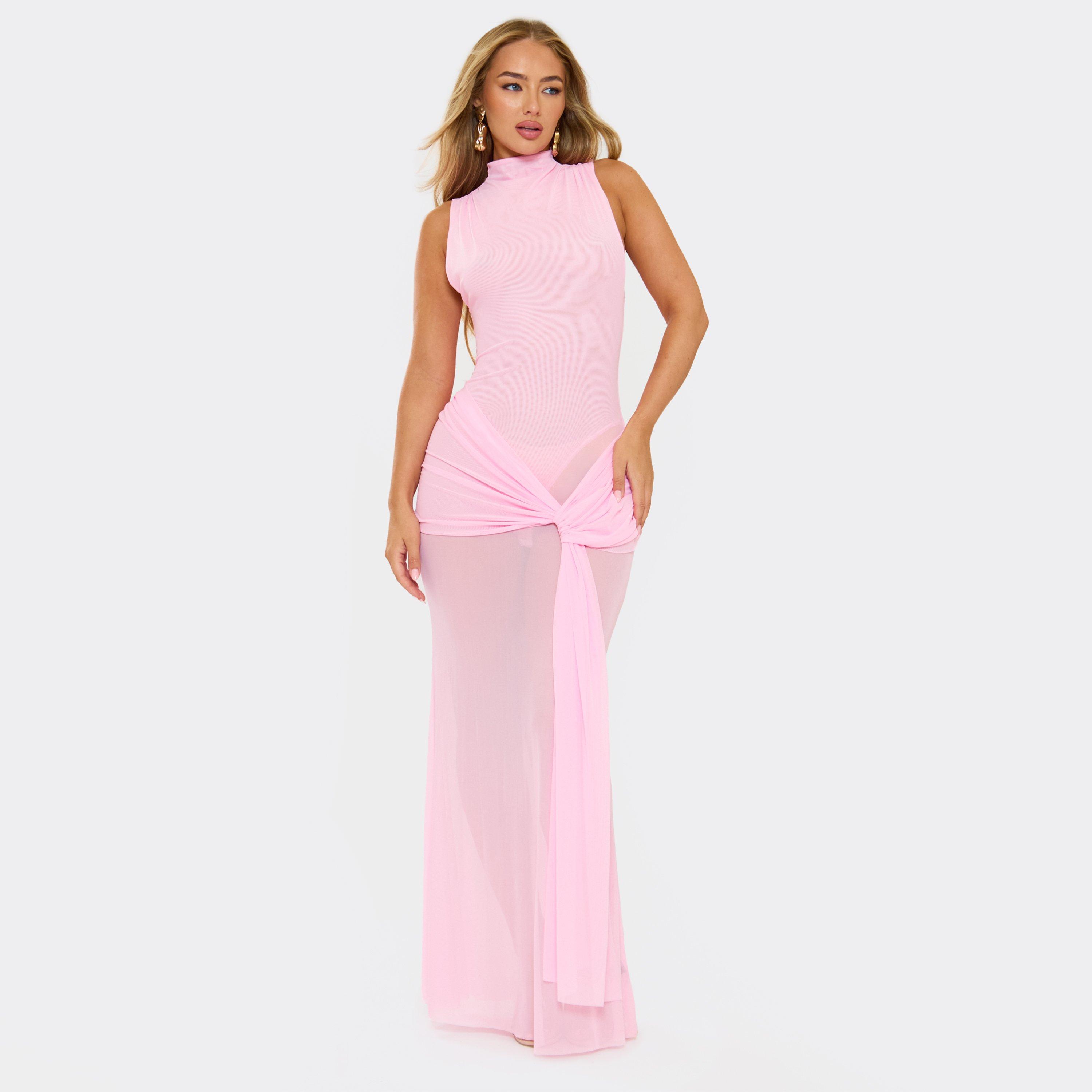 Serve soft glam, doll! Featuring pink fabric with sleeveless drape and knot front detailing, this maxi dress brings fresh, chic vibes perfect for turning heads with effortless flair.