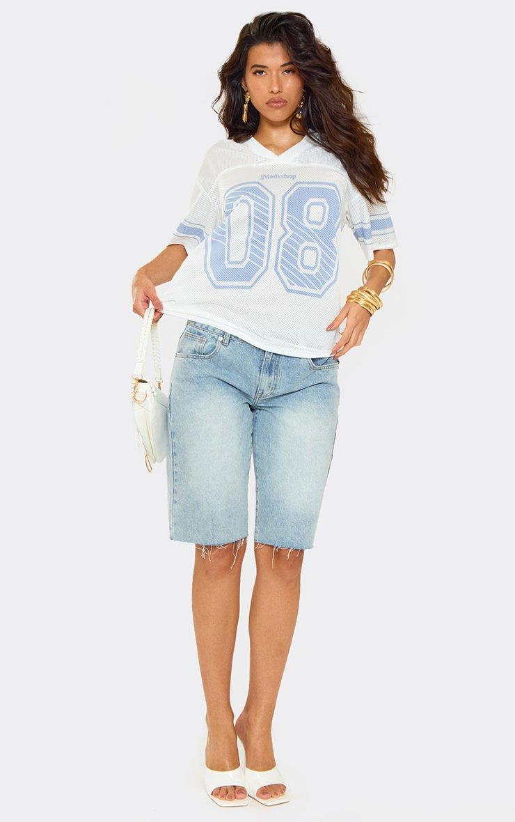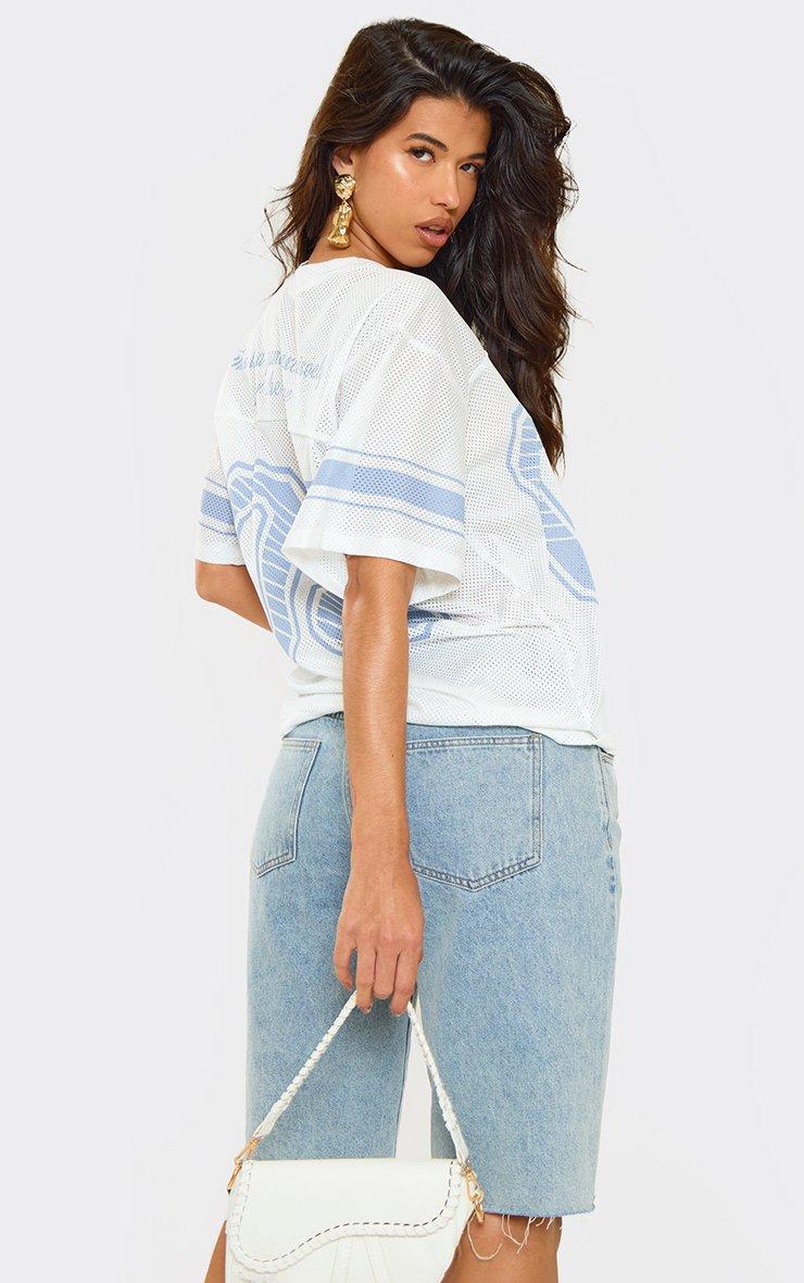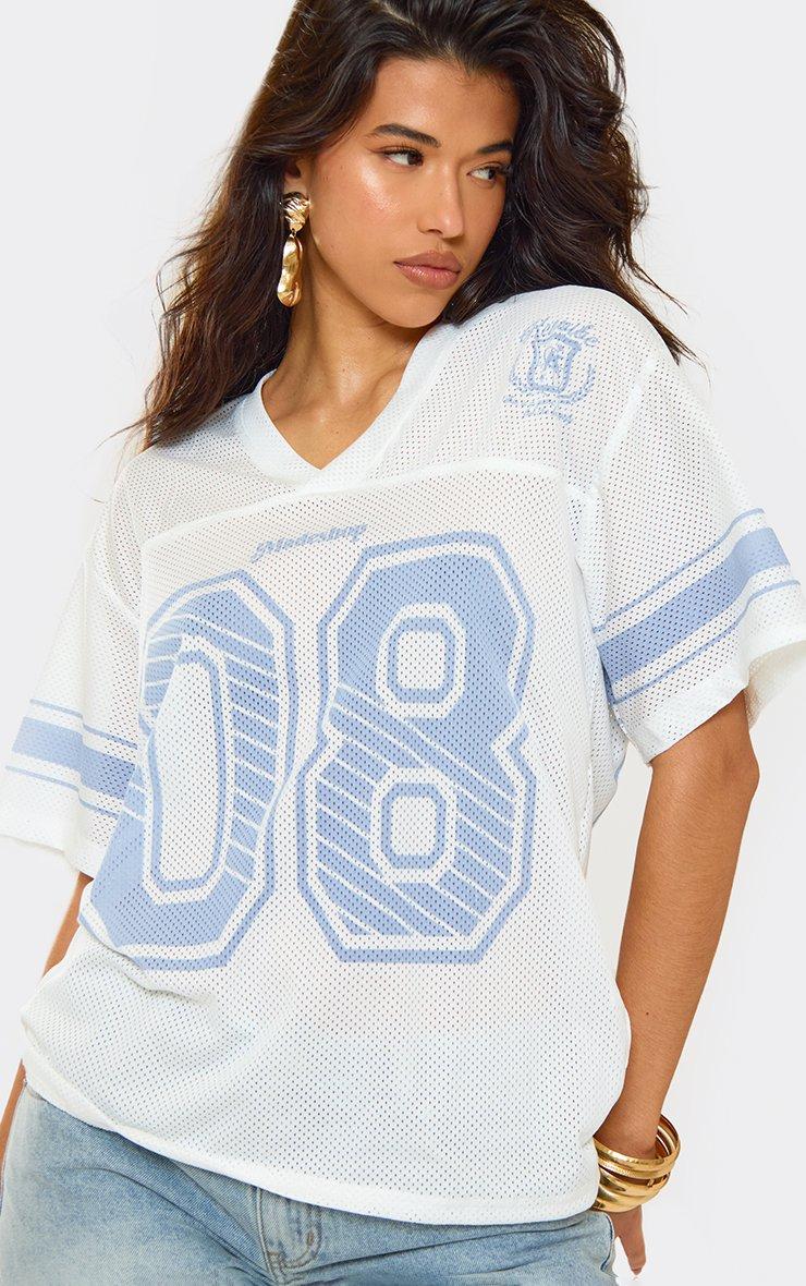 Short Sleeve Contrast Trim Detail Football Varsity Top In White