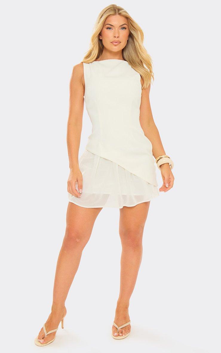Sleeveless Contrast Frilled Hem Detail Mini Dress In Cream