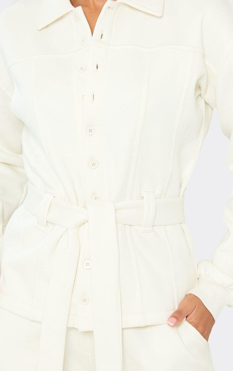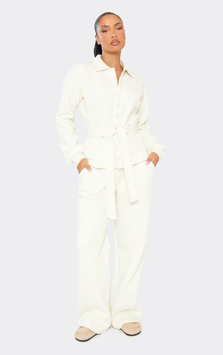 Stay cosy on the go with this cream long sleeve button up sweatshirt – a versatile pick for relaxed travel outfits. Designed with a collared neckline, button-up front, and tie waist, it combines structure with comfort for effortless layering. Ideal for airport days, weekend getaways, or scenic city strolls, this loungewear pairs beautifully with joggers, leggings, or wide-leg trousers. Style this sweatshirt with hoop earrings or mini boots for polished, on-the-move looks. Complete your travel-ready wardrobe with this cream long sleeve button up sweatshirt. Key Features: Collared Neckline Button-Up Front Tie Waist Detail Cream Fabric Relaxed, Travel-Ready Fit