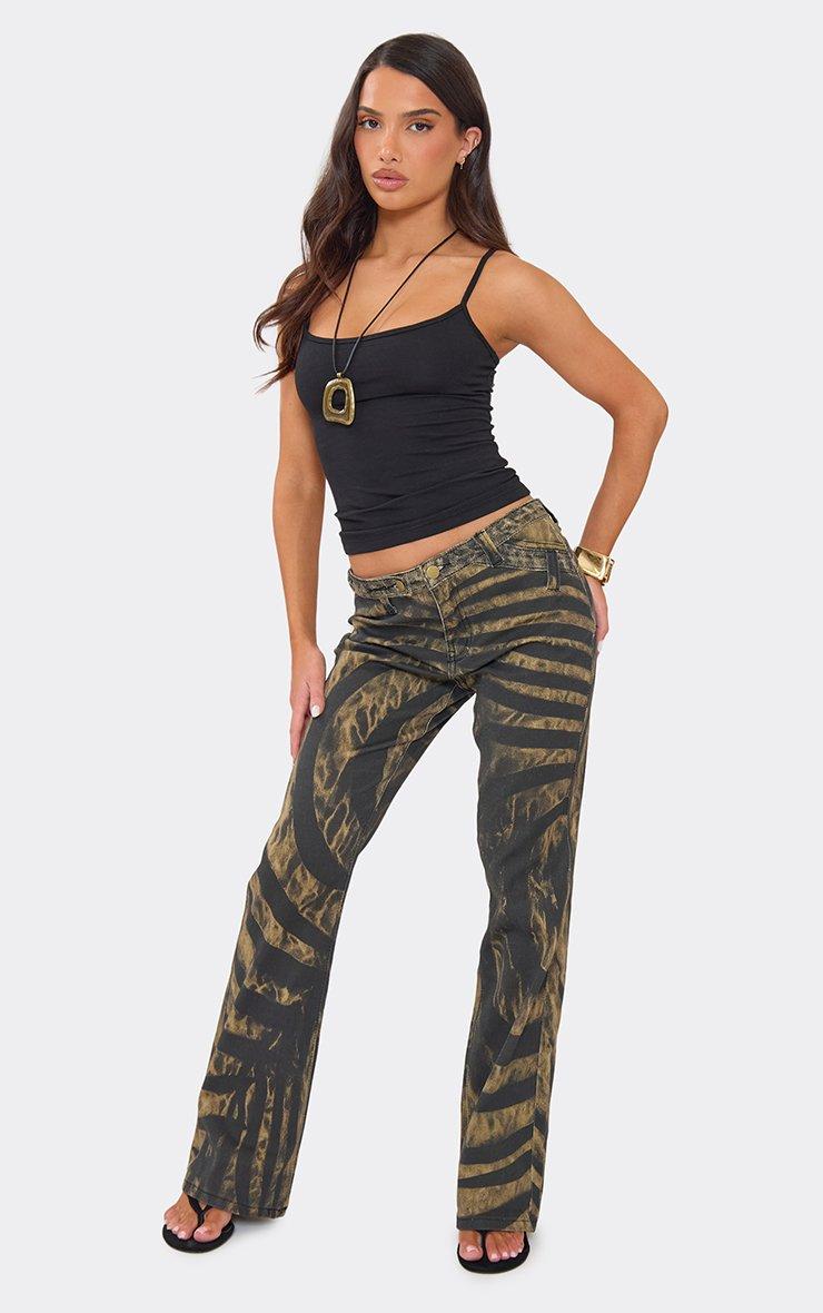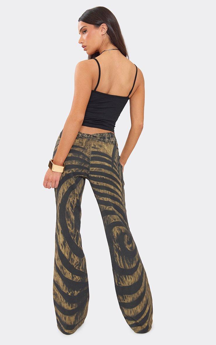 Dipped Low Waist Flared Leg Trousers In Brown Spiral Print