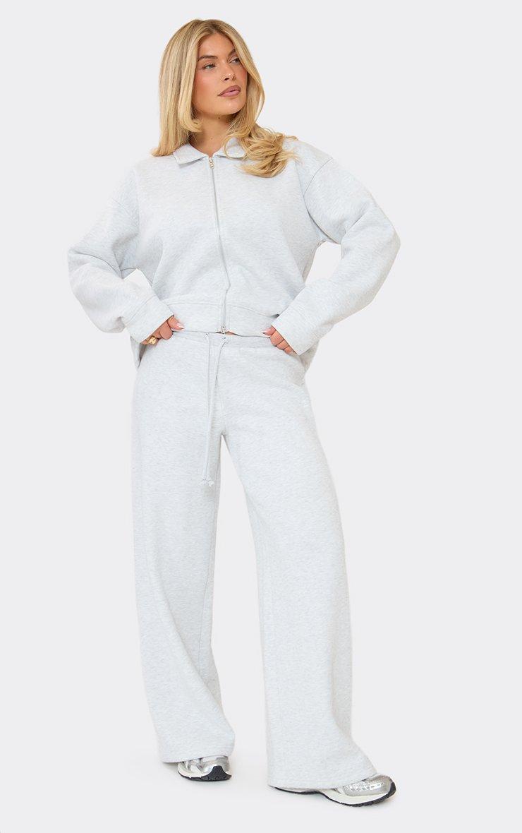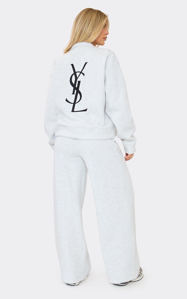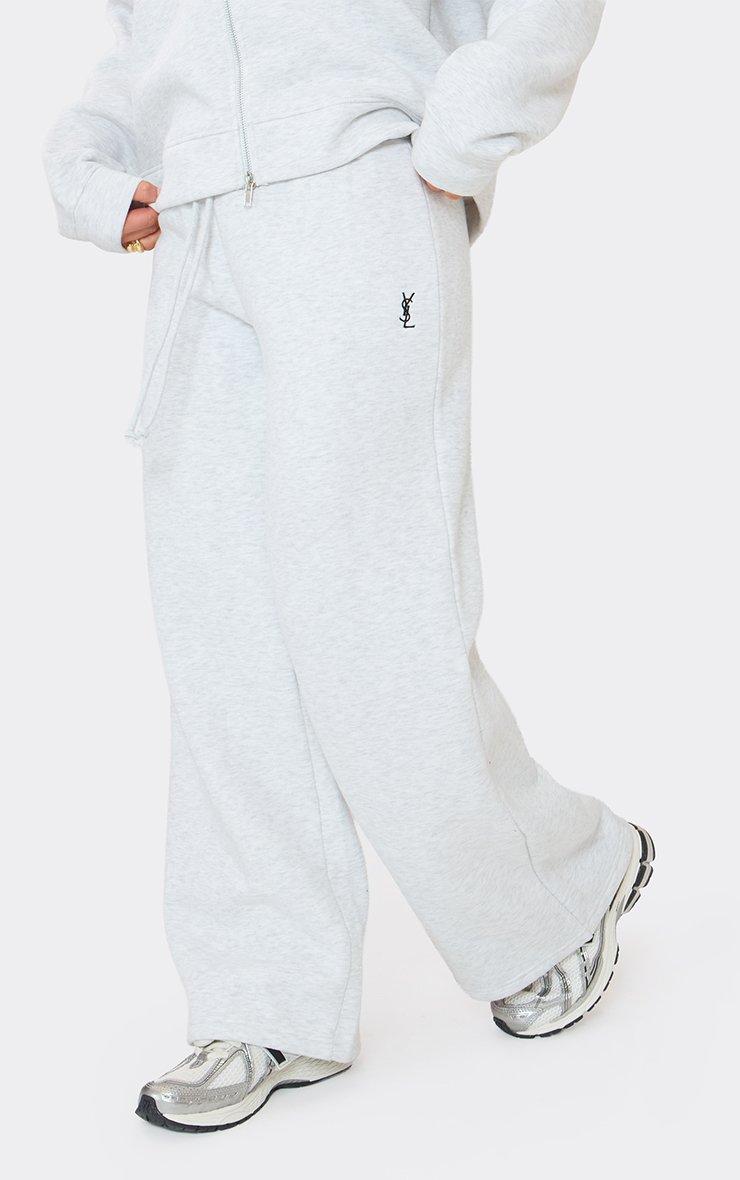 Serve serious main character energy in these must-have bottoms, the ultimate pick for your next airport run. Featuring light grey marl sweat material with graphic detailing, a drawstring waist and an effortless wide leg fit.