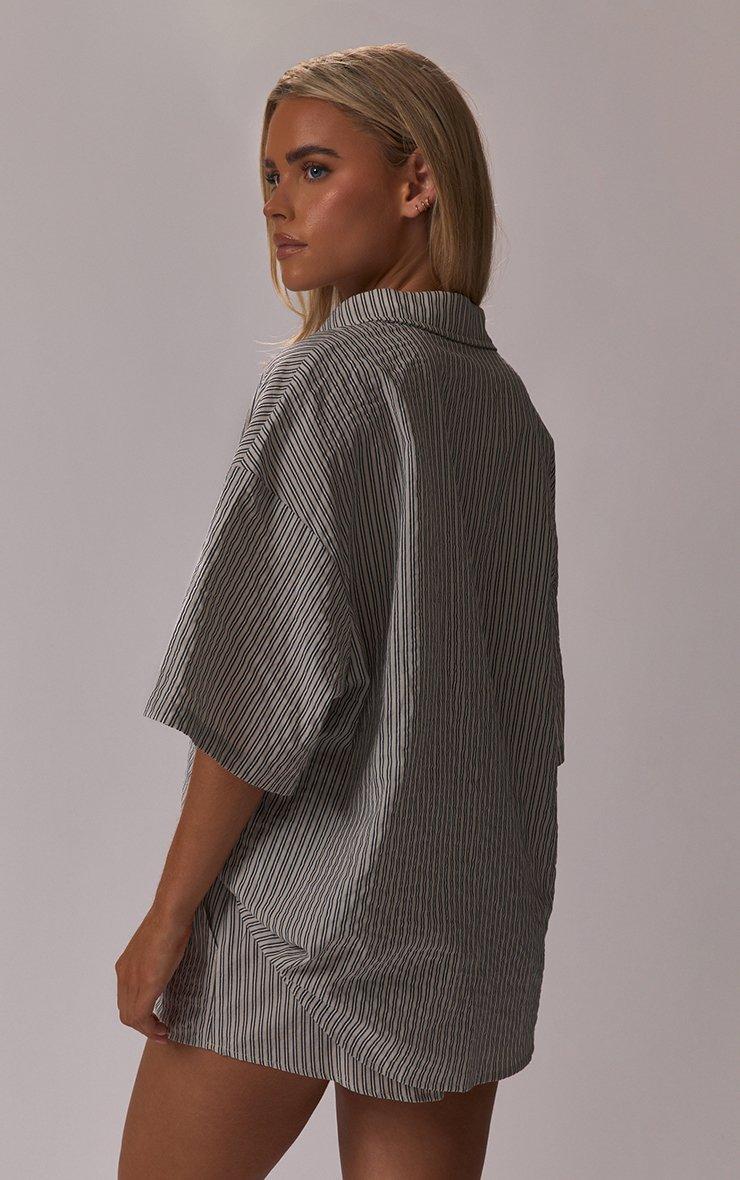Upgrade your off-duty look this season. Featuring grey stripe crinkle poplin material with short sleeve detailing and a button-down front. Style with the matching trousers and fresh trainers for a chilled vibe that's totally on-trend.
