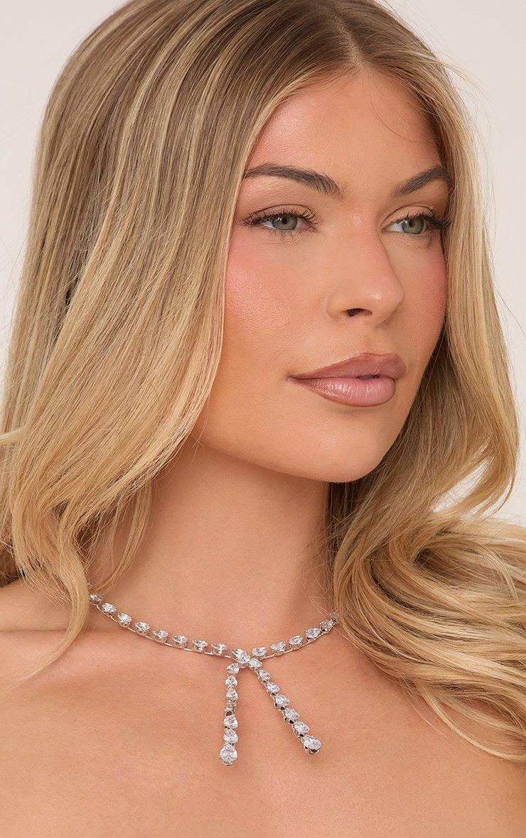 Upgrade your look with our Diamante Drop Detail Necklace In Silver. This diamante drop necklace boasts a stunning silver material with sparkling drop details. Whether it's date night or last minute margs, this necklace adds instant glam!