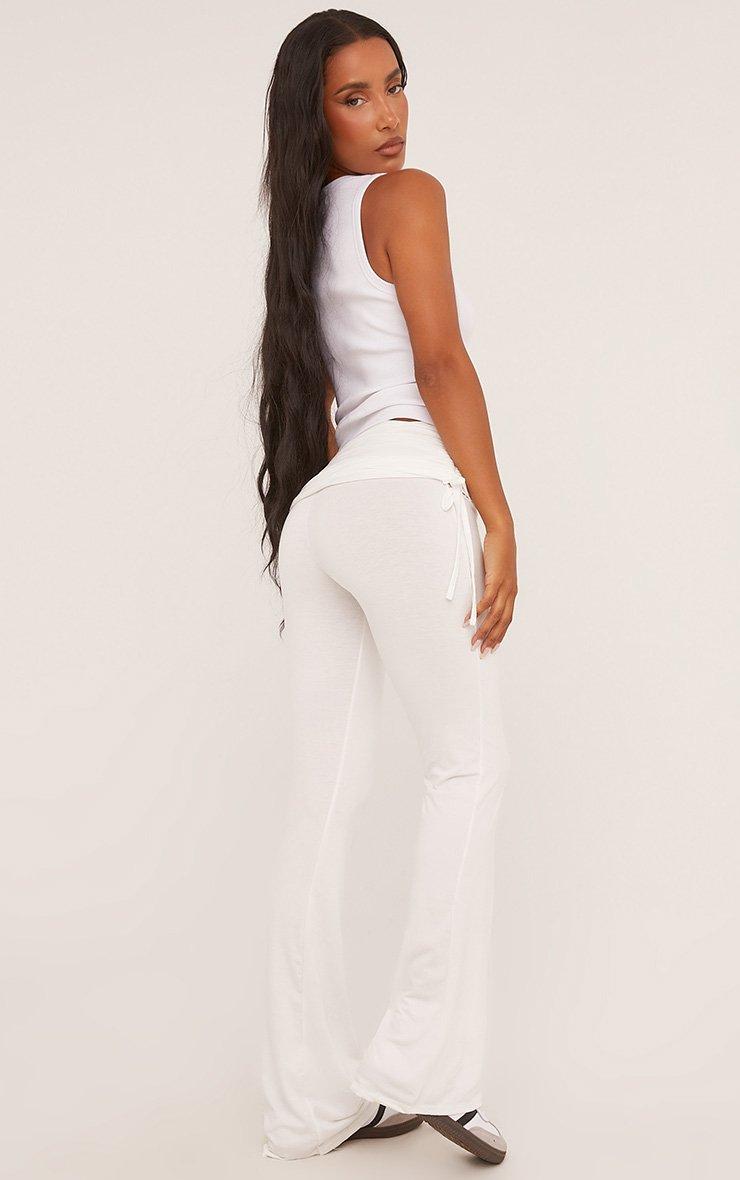 Low Rise Fold Over Ruched Waistband Flared Trousers In White