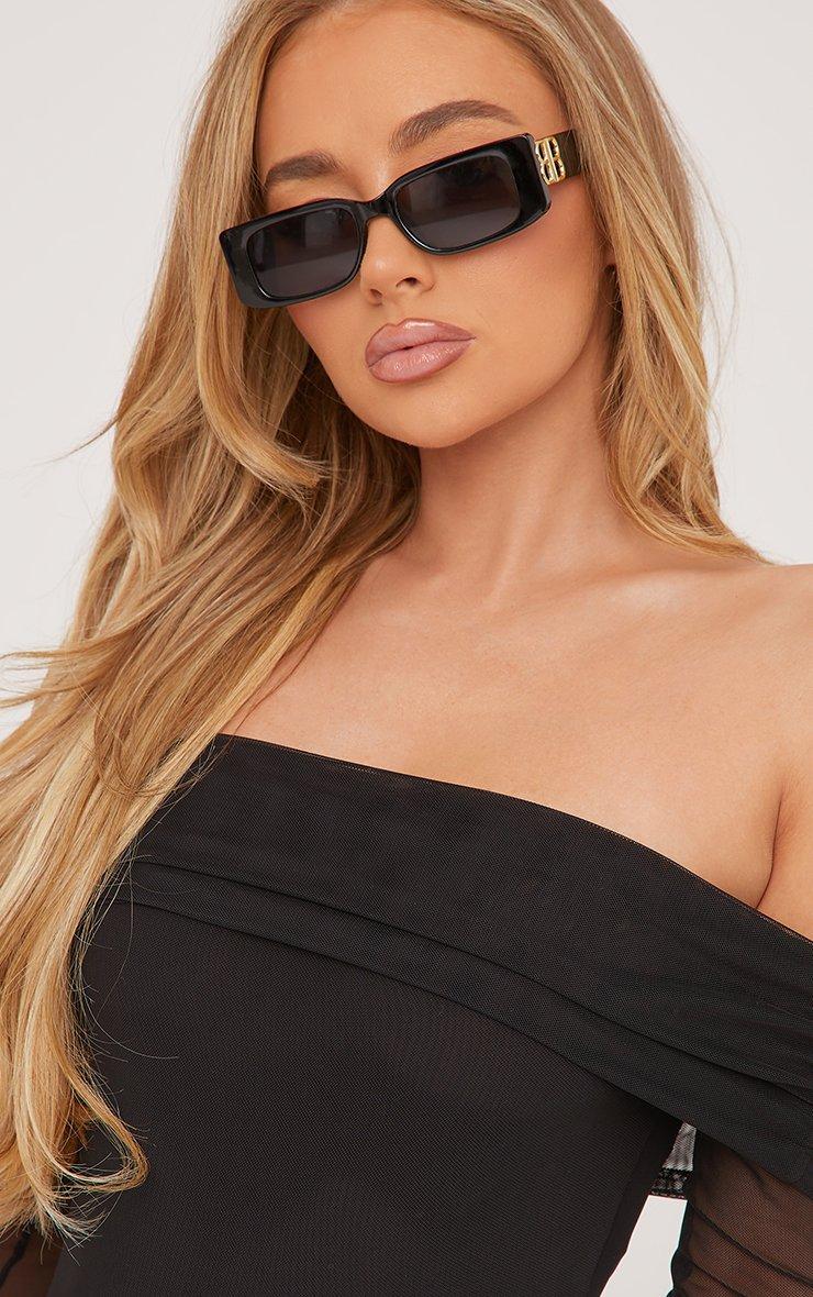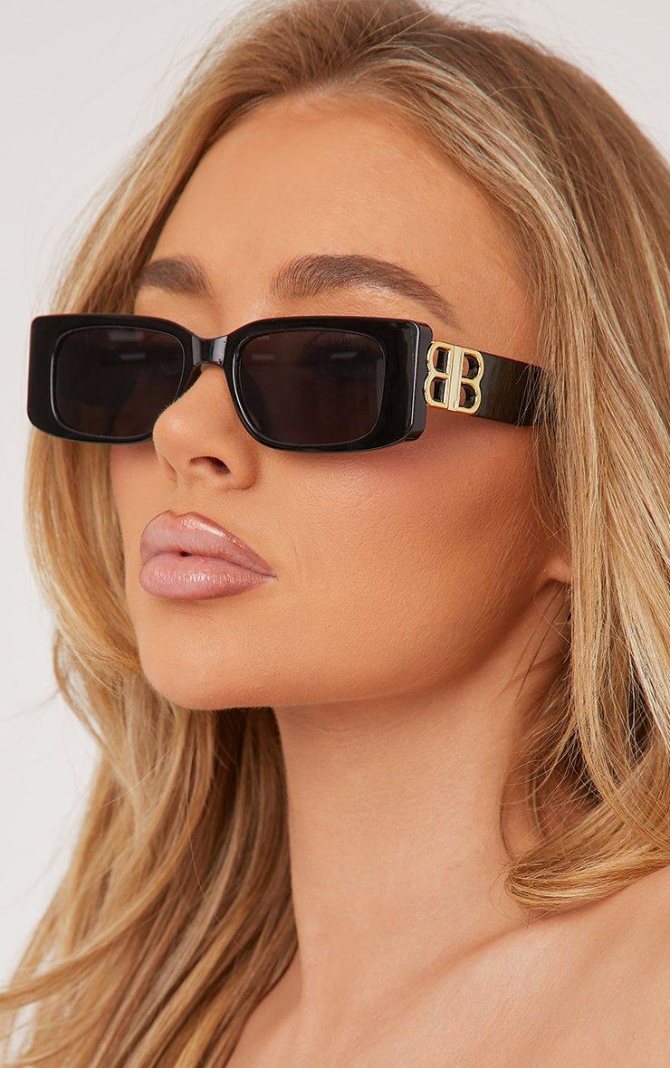 Rectangle Shape Side Detail Slim Frame Sunglasses In Black