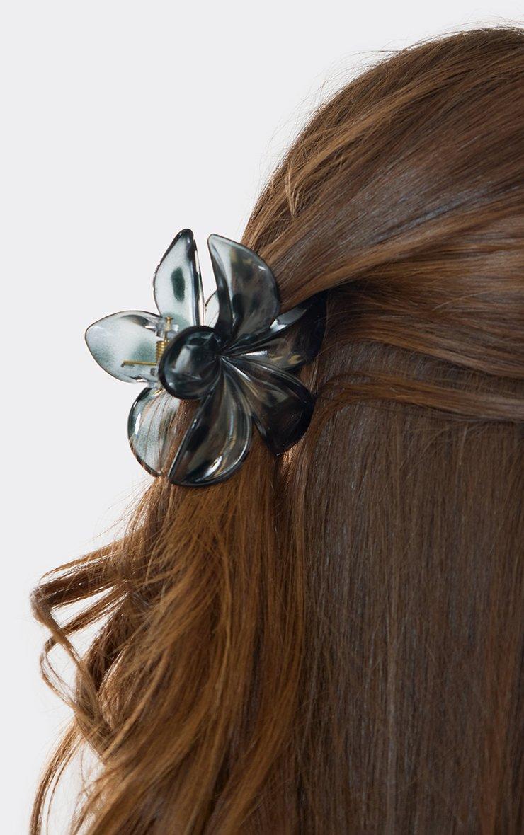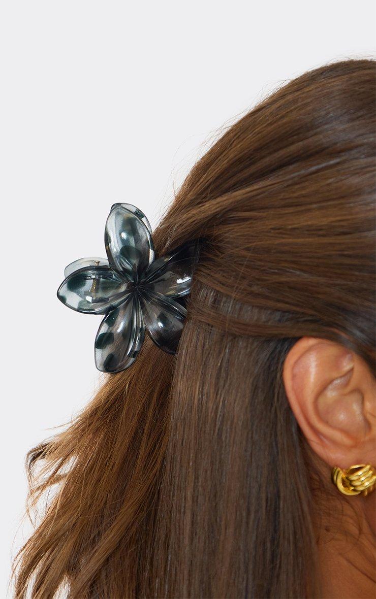 Add a pop of floral charm to your look with this black hair claw clip, featuring a printed flower detail for a chic and playful finish to any hairstyle.